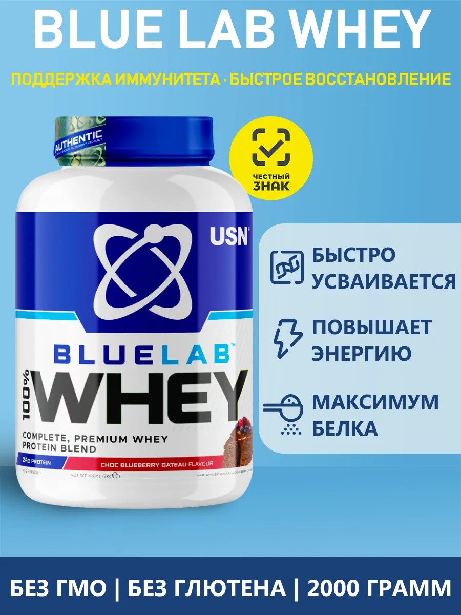 USN Blue Lab Whey 2000 г Blueberry Chocolate — премиальная сывороточная смесь с комплексным составом