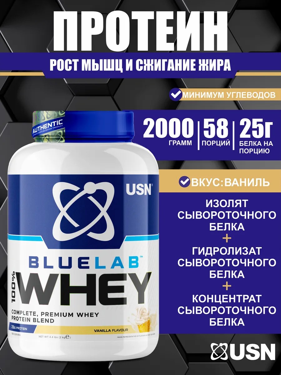 USN Blue Lab Whey - это высококачественный протеиновая смесь, созданная для тех, кто стремится к достижению своих фитнес-целей. Содержит 100% сывороточный протеин, который быстро усваивается организмом, обеспечивая мышцы необходимыми аминокислотами для восстановления и роста.