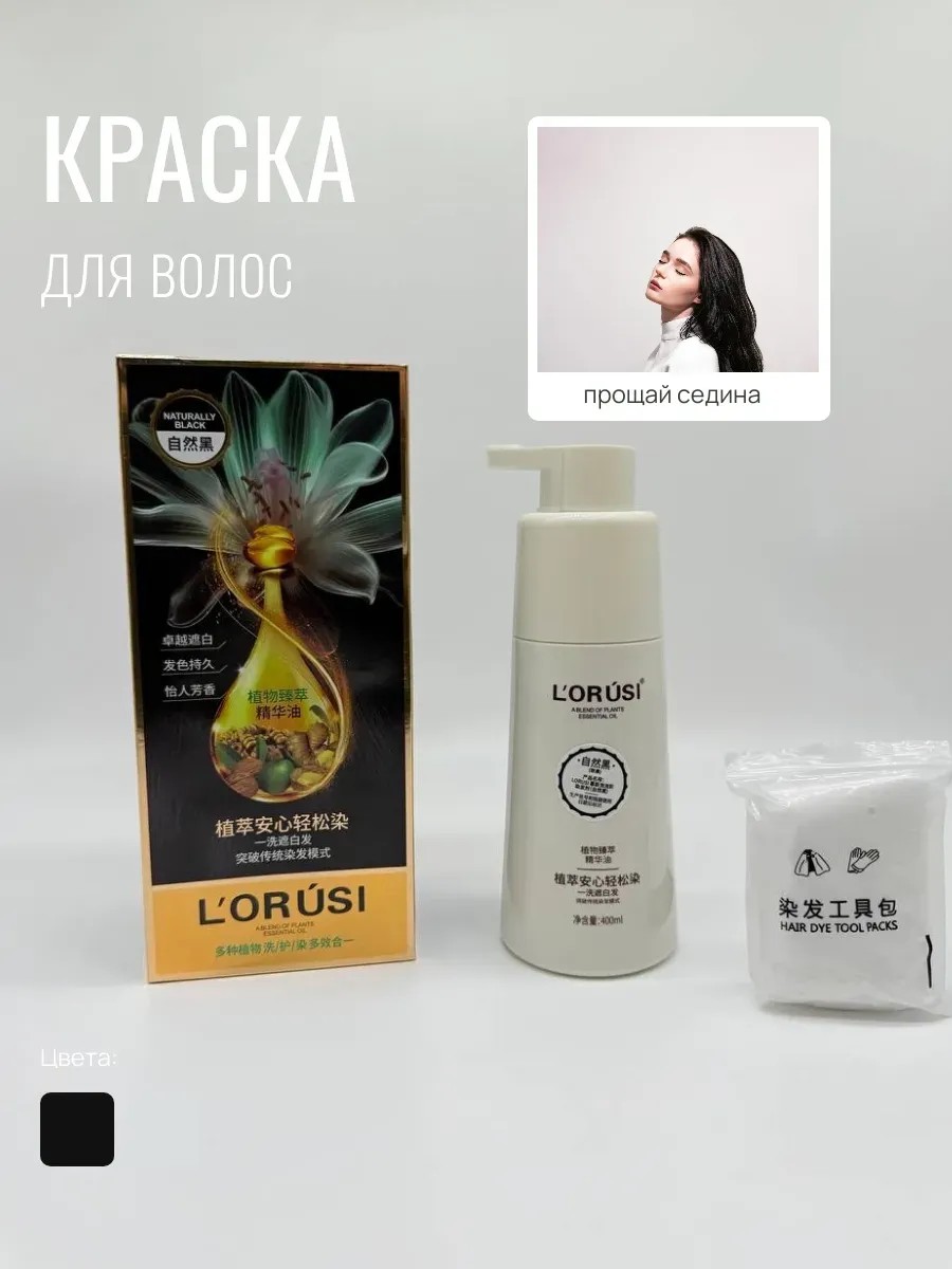 L’ORÚSI — одноступенчатая краска для волос, закрашивает седину за одно применение. Натуральный черный оттенок, уходовые компоненты для здоровых волос.
