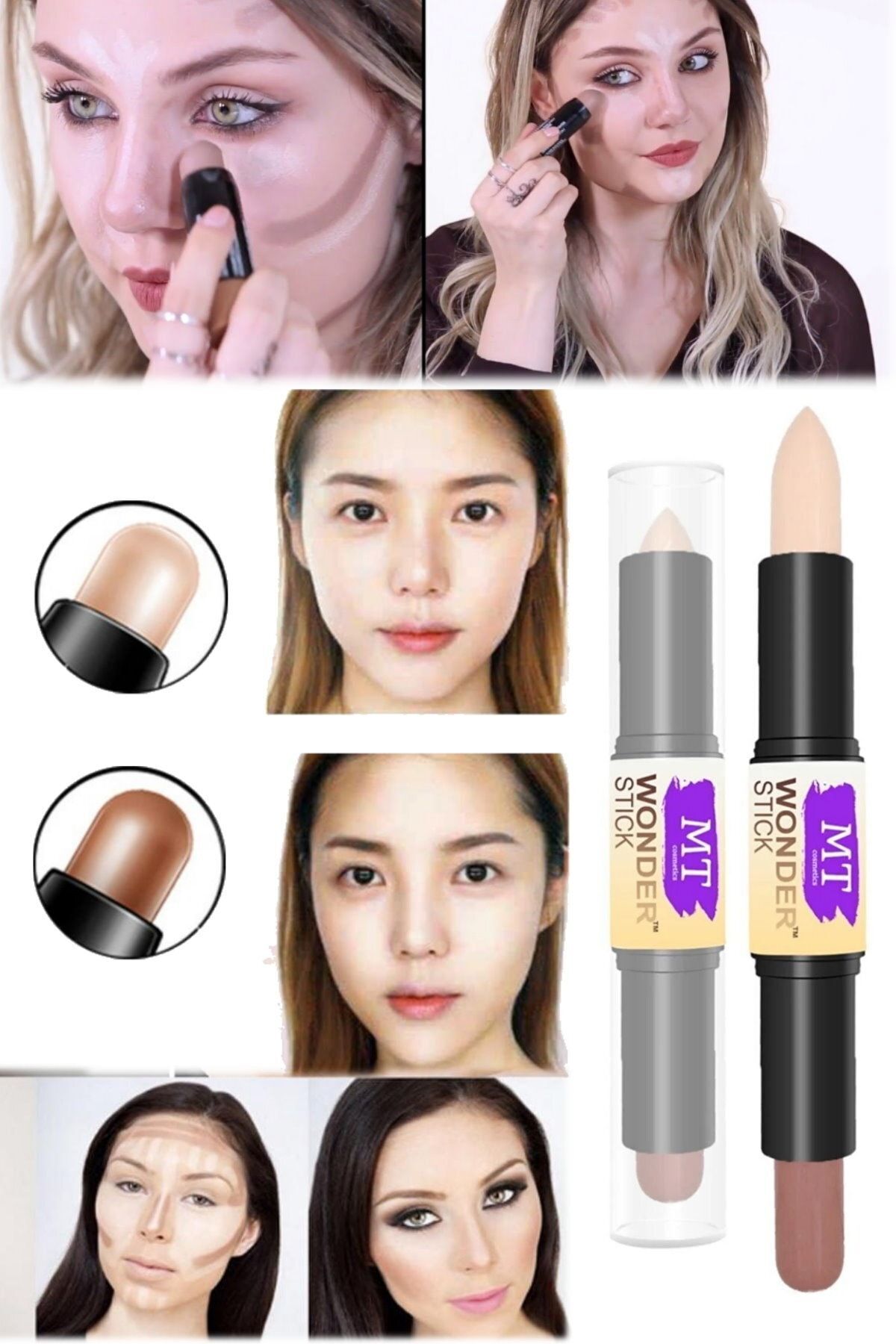 Çift Uçlu Stick Kapatici Profesyonel Yüz Boyun 2 Renk Kapatici Stick Kalem Kadinlara Özel Makyaj Set