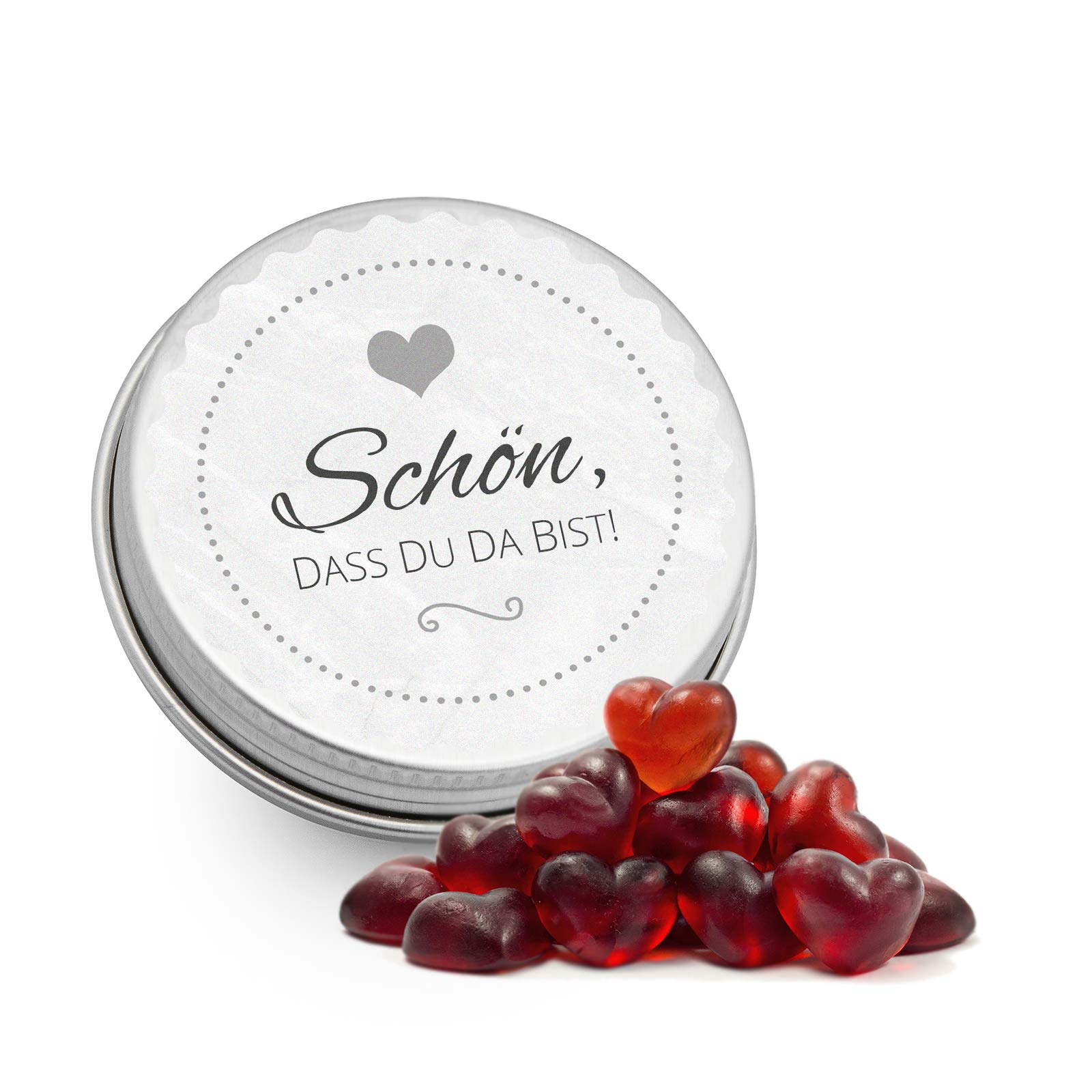 DeinBonbon - Lot de 20 mini boîtes pour dragées - Pour mariage, anniversaire, baptême et communion - Blanc - Cœurs en gomme aux fruits