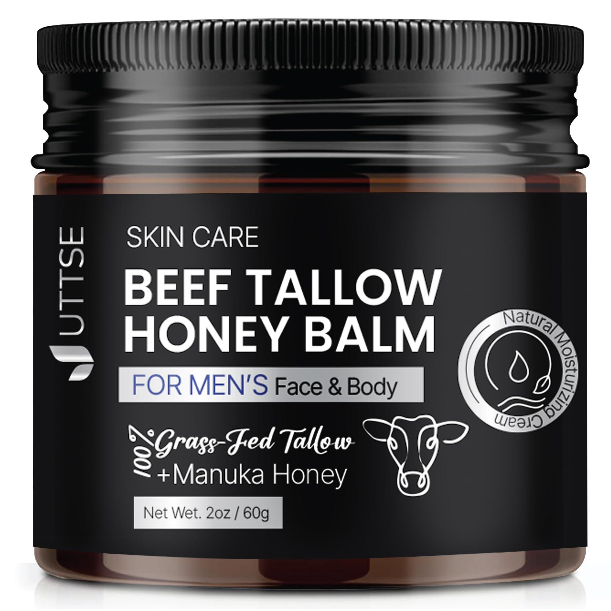 Uttse Beef Tallow Honey Balm for Skin:100% Grass-Fed Beef Tallow Moisturizer For Face and Body - Tallow Balm With Olive Oil Manuka Honey For Sensitive Dry Skin Repair 2 oz