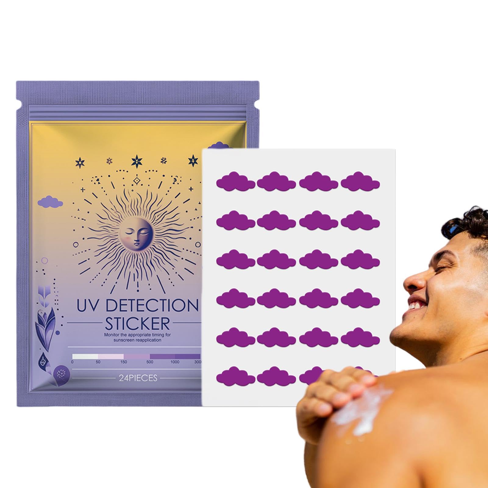 ✓✓✓Real-Time Sunscreen Reminders: Keep your skin safe with our UV detection stickers that turn purple when it's time to reapply sunscreen, providing on-the-go monitoring for continuous sun protection. ✓✓✓RConsiderate : Surprise your loved with these UV detection stickers. Perfect for birthdays, festivals, and summer getaways, guarantee their skin stays safe under the sun. ✓✓✓RDay-Long Sunscreen Shield: Our sunscreen stickers assure long-lasting defense against harmful UV rays for up to 12 hours, making them the perfect partner for all-day outdoor activities. ✓✓✓RStyle Your Sun Protection: Boost your sun protection with our UV Detection Stickers that add style and functionality to your routine. Their cute and trendy shape is the perfect fashion accessory while also reminding you to reapply sunscreen. ✓✓✓RStay Safe in The Sun: Equipped with advanced UV blocking technology, these stickers change color to ensure your protection from harmful rays. Keep your peace of mind while delightful outdoor activities.