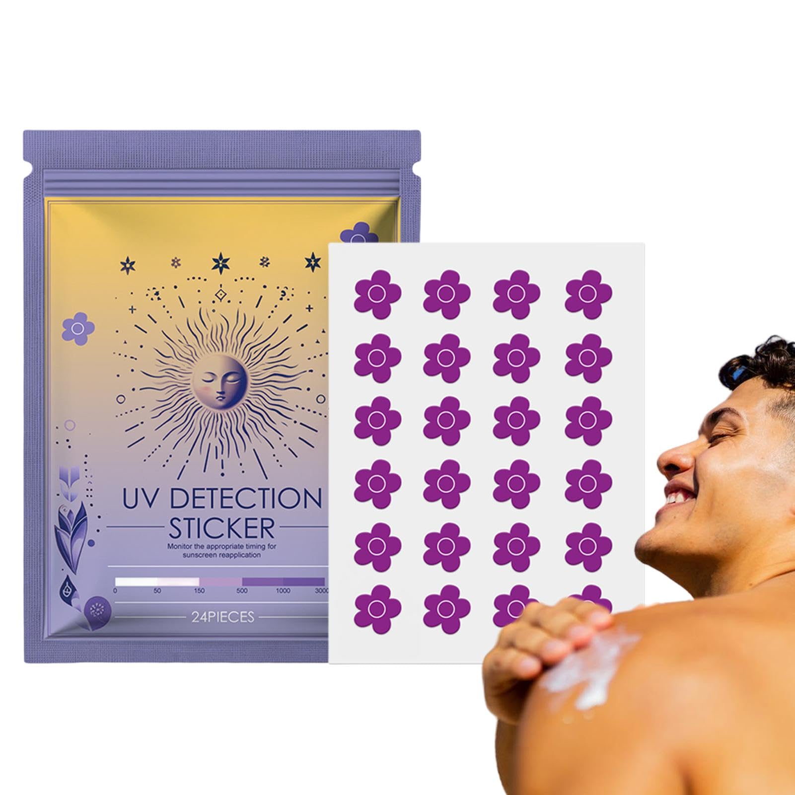 UV Detection Stickers for Sunscreen | UV Stickers For Sunscreen | UV Detecting Patches | SunnyPatch | 24 Sunblock Patches | Sunblock Sticker | Sunscreen Reminder Stickers, Sun UV Sticker These UV Detection Stickers provide real-time monitoring for sun damage, ensuring you're protected from harmful rays all day. Add some style to your sun protection and surprise your friends with these stickers on your next outdoor adventure. Perfect for all-day outdoor activities! Specification: Keywords: UV protection Specifications: 24pieces (clouds, hearts, stars, flowers, moon) Gross weight: 4g Ingredients: Nano glue, soy ink, PET film, water transfer paper Product size: about 6x8cm/2.36x3.15 inches Packing size: about 15x10cm/5.91x3.94 inches Packing List: UV Detection Sticker*1 pack Note: This product is designed as complementary tool and should not replace regular sunscreen use. Always follow proper sun protection guidelines. Due to different lighting and screen settings, the item color may be slightly different from the picture. Due to different manual measurements, please allow 1-2cm difference in size.