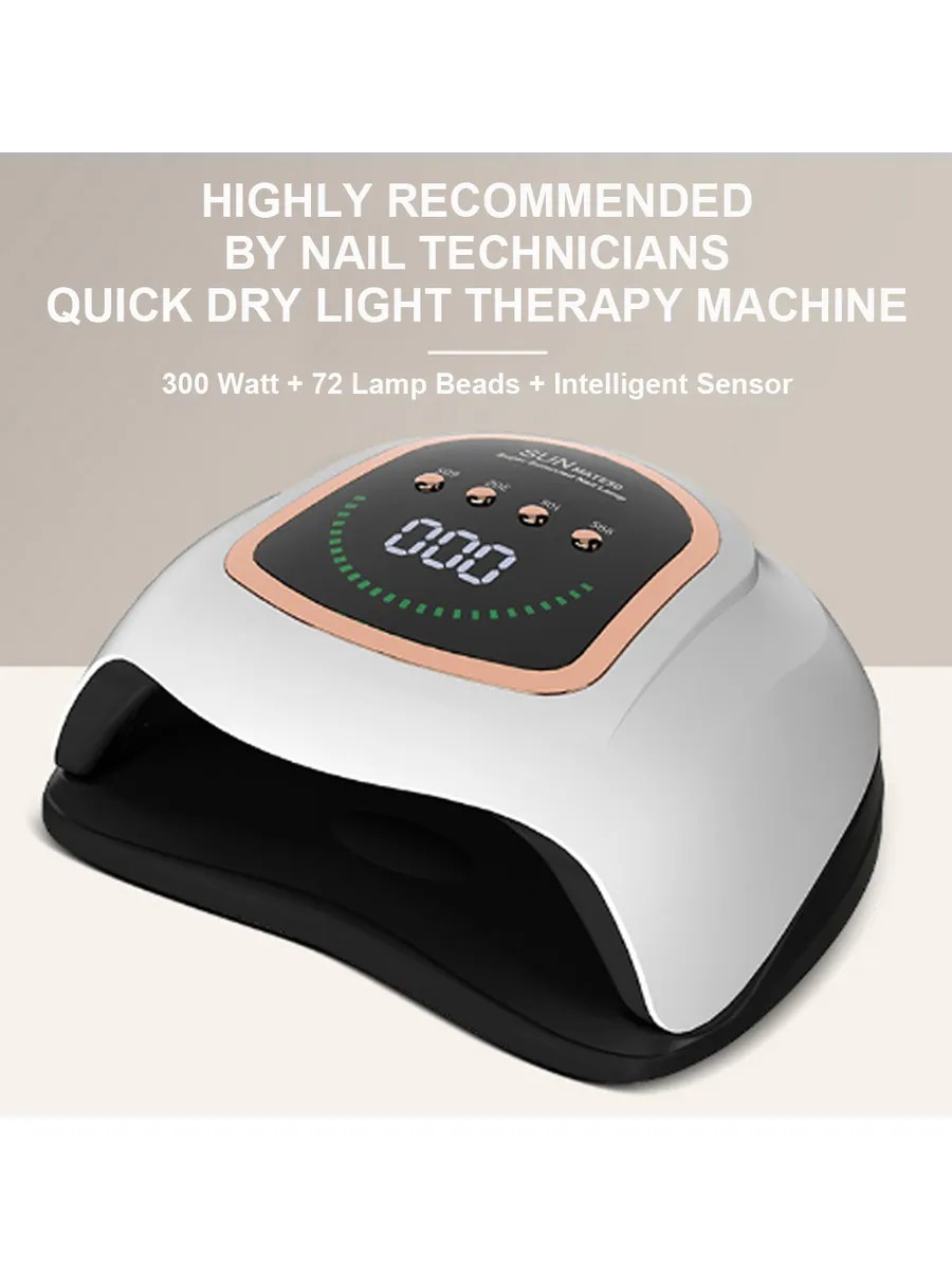 Высокая мощность, быстрое высыхание: мощность 300W, 72 красных LED, подходит для гелей и многослойных покрытий. Равномерное распределение светодиодов обеспечивает равномерное высыхание без пропусков.