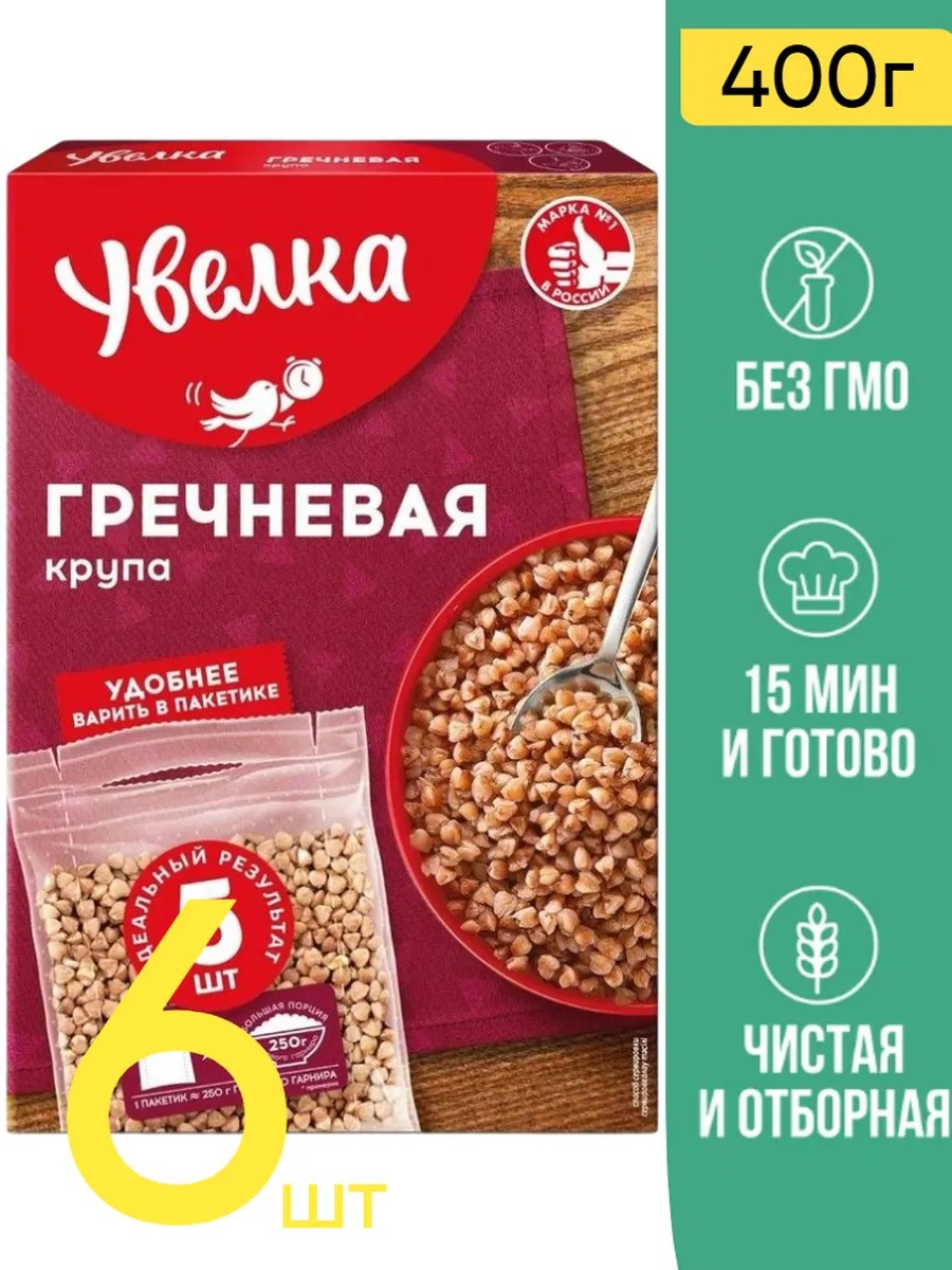 УВЕЛКА Гречка ядрица Экстра в пакетиках для варки 400 г, 6 шт