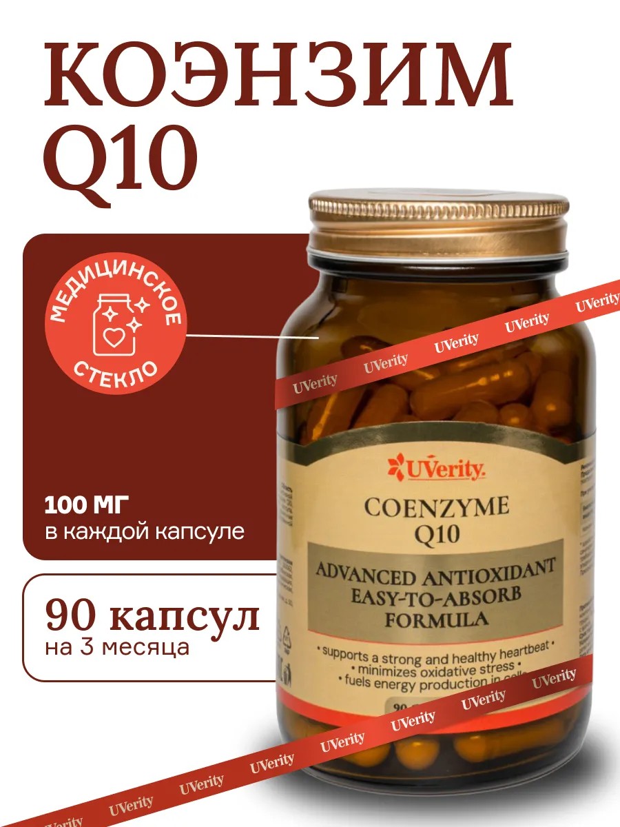 Продукт от UVerity содержит коэнзим Q10 в высокой концентрации, что обеспечивает его эффективность и пользу для здоровья - 100 мг коэнзима в каждой капсуле!