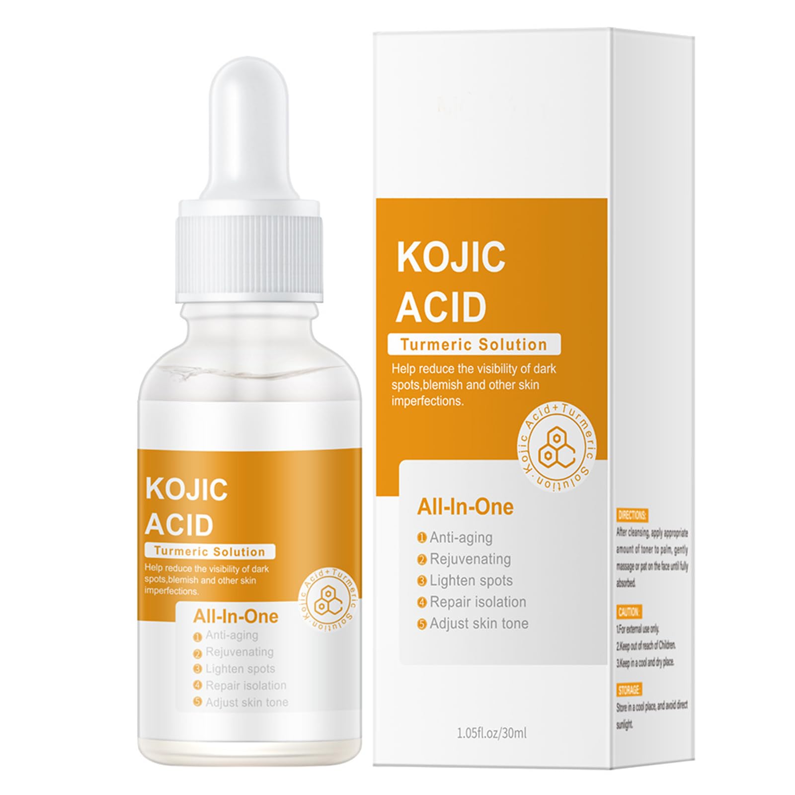 Directions: After cleansing your face morning and night, take an appropriate amount of essential water in the palm of your hand and gently pat it over your entire face and neck until fully absorbed. Gentle formula: Suitable for all skin types, fragrance-free and pigment-free to minimize skin irritation. Lightweight texture, easily absorbed, non-greasy, leaving skin feeling refreshed and comfortable after use. Deep hydration: Helps hydrate dehydrated and dry skin, for firm and youthful-looking skin. Glowing, glassy skin: Turmeric essence can brighten skin tone and create a smooth, radiant complexion. The transparent formula absorbs quickly into the skin for a soft and smooth feel. Turmeric serum with kojic acid: Our product can delay skin aging and improve the appearance of fine lines and wrinkles. It improves pigmentation, restores damaged skin, evens skin tone, and nourishes dry skin.