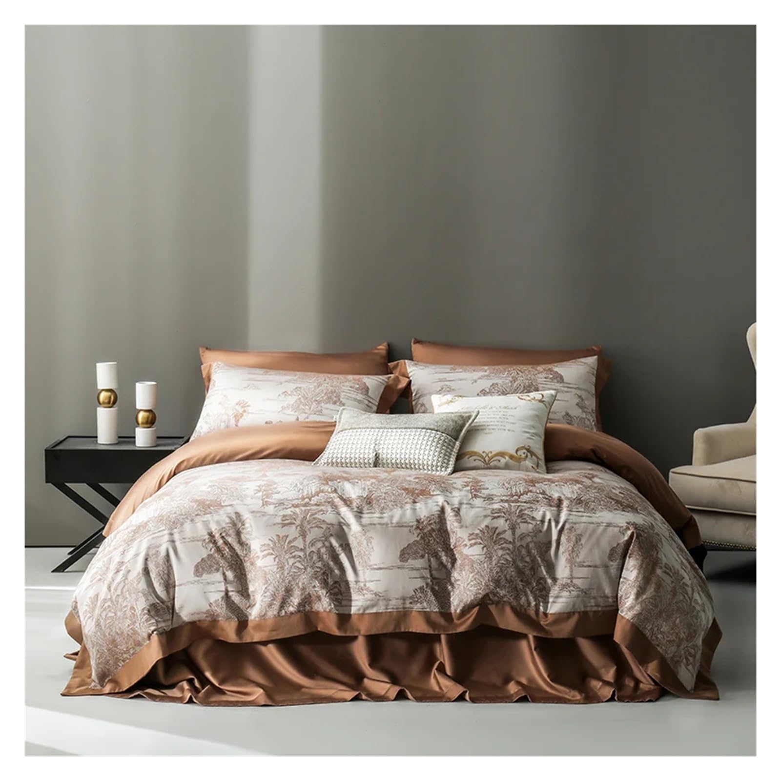 V-intage American Deluxe Bedding Set Tropical Botanical Print Soft Silk Duvet Cover Set Sheet Pillowcase Soft (A Fitted1.6M)