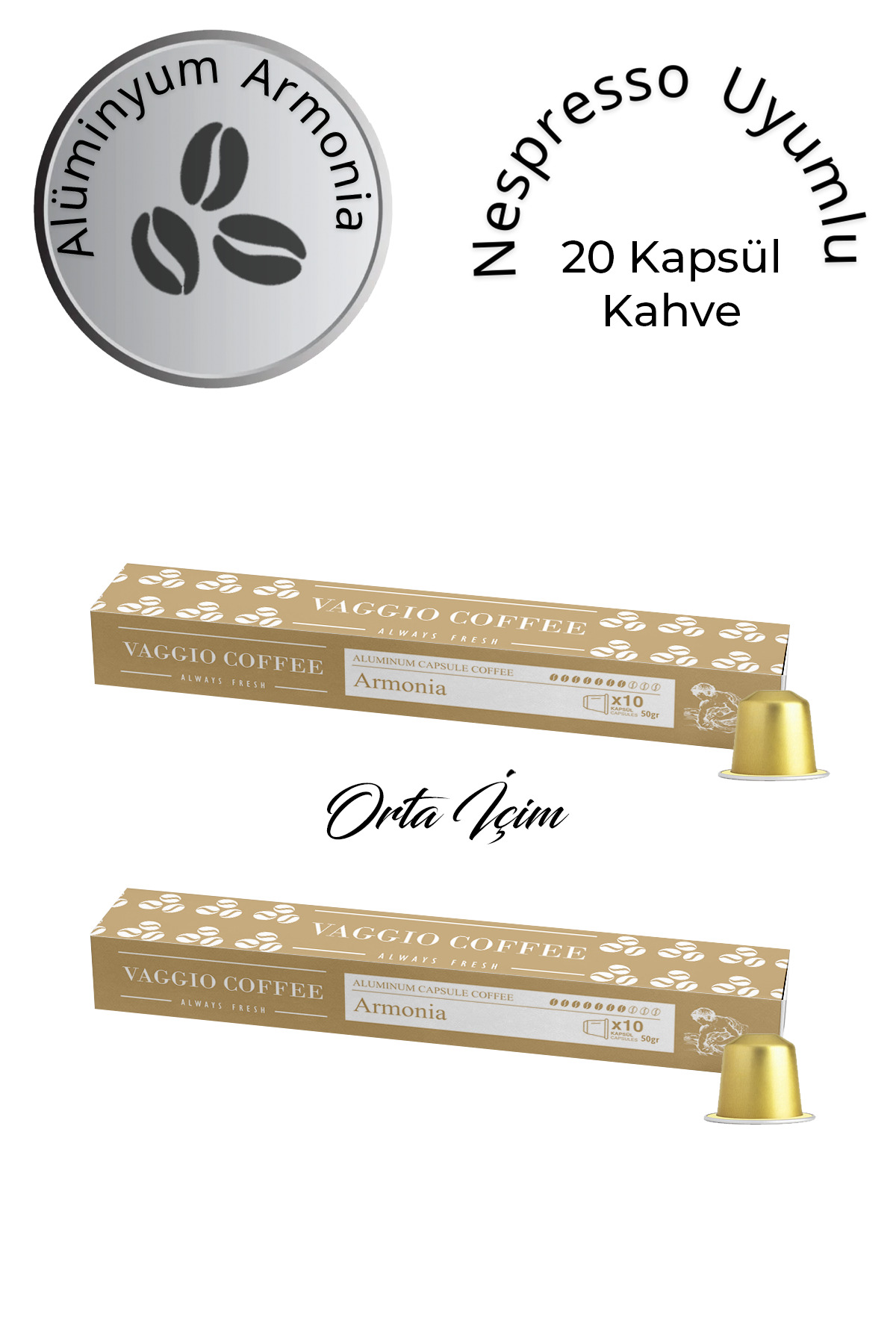 Vaggio Coffee Nespresso Compatible Armonia Aluminum Capsules 20 pcs