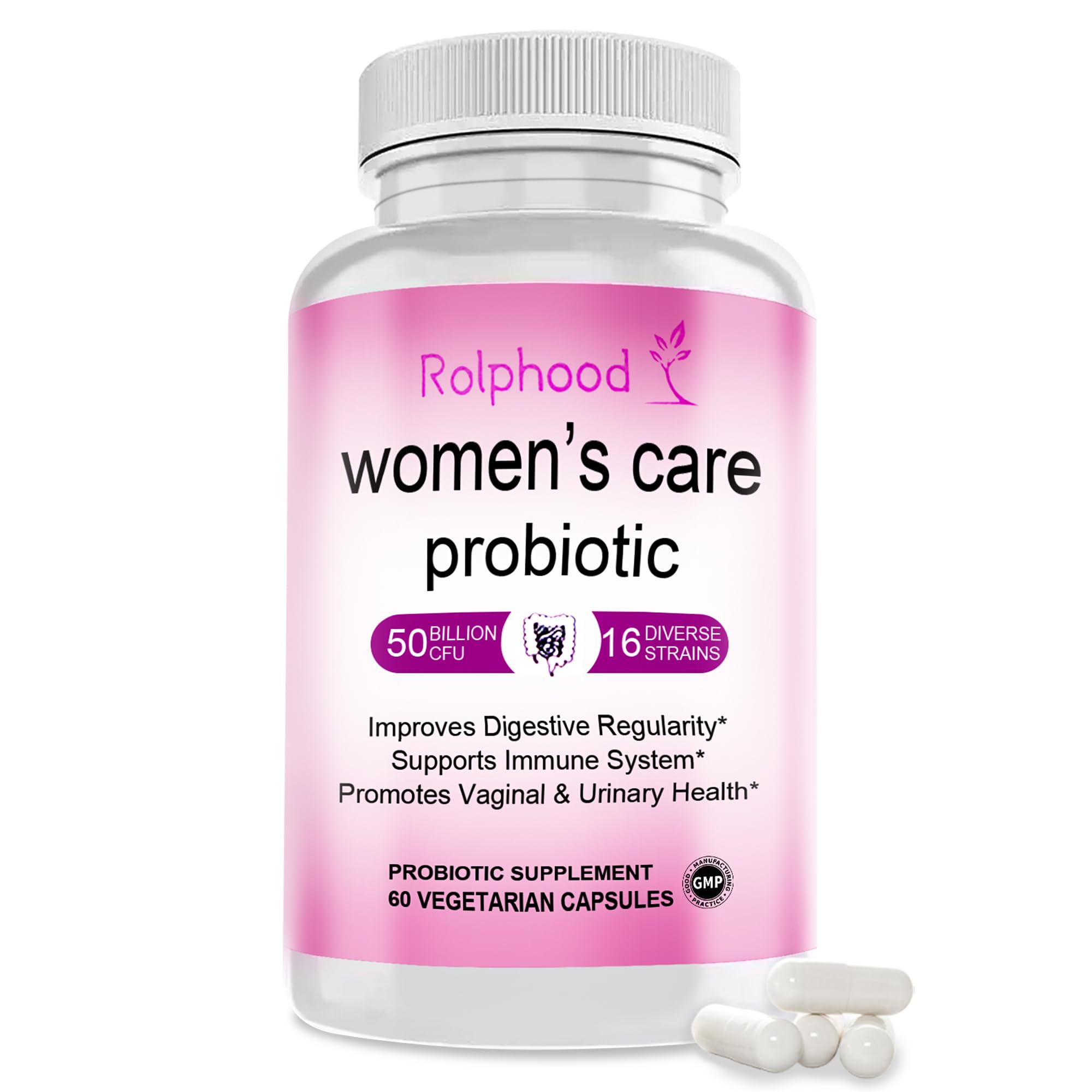 Rolphood QUEEN SUPPLEMENTS: Rolphood vaginal probiotics for women,make you feel fresh with newfound comfort confidence.Vaginal wellness made easy,Stay Healthy Be Your Own Queen!. QUALITY AND SAFETY: Women's probiotics are GMP certified . The product is Soy-free,Non-GMO,Nut-free,Sugar-free,Vegan, so you can use it with confidence. GOOD-QUALITY: These easy-to-swallow, delayed-release pills help ensure the probiotics reach your gut alive and guarantee potency, quality and purity through the expiration date. IMMUNE SUPPORT: Vaginal probiotic supplement for women contains 60 counts, 2 counts per day for 30 days, after before during meals, to support immune system health. 16 DIFFERENT STRAINS: Vaginal probiotic with a blend of 16 different strains to support pH balance,control and maintain urinary tract health , avoid to urinary tract infections. VAGINAL PROBIOTICS FOR WOMEN: Rolphood Women's care probiotic capsules Includes 60 counts, 50 Billion CFU support your digestive system gut health boost immunity women's health.