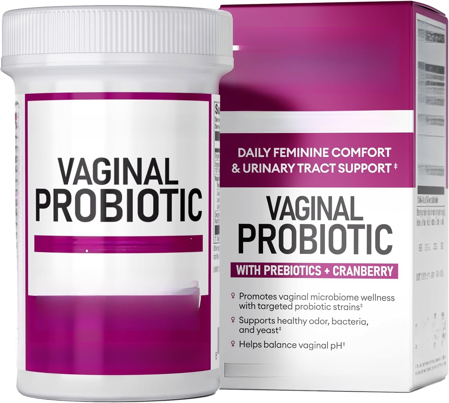 Vaginal Probiotics for Women is formulated with three clinically researched probiotic strains to promote healthy pH balance and natural vaginal moisture, helping you feel comfortable and confident every day. The same great products you love, but like new. Our synergistic blend supports vaginal and urinary tract health with native probiotics for a healthy vaginal microbiome, organic cranberry extract to support the urinary tract, and organic prebiotics to nourish beneficial bacteria and maintain natural fluid balance. Just one capsule a day supports healthy vaginal flora and yeast balance, leaving you feeling fresh, confident and hydrated. A balanced microbiome means more than just controlling odor, it also supports ongoing vaginal comfort and moisture for everyday health. Statements regarding dietary supplements have not been evaluated by the FDA and are not intended to diagnose, treat, cure, or prevent any disease or health condition. SAFETY WARNING NOEveryday comfort and confidence. Complete 3-in-1 formula. Clinically studied probiotics for vaginal health.Vaginaal probiotisch supplement - Dagelijkse ondersteuning voor vaginaal vocht, geurbeheersing en pH-balans, probioticum voor vrouwelijke gezondheid Vaginale Probiotica voor Vrouwen is geformuleerd met drie klinisch onderzochte probiotische stammen om een gezonde pH-balans en natuurlijk vaginaal vocht te bevorderen, waardoor u zich elke dag comfortabel en zelfverzekerd voelt. Dezelfde geweldige producten waar je van houdt, maar dan als nieuw. Onze synergetische mix ondersteunt de gezondheid van de vagina en de urinewegen met inheemse probiotica voor een gezond vaginaal microbioom, organisch cranberry-extract om de urinewegen te ondersteunen en organische prebiotica om nuttige bacteriën te voeden en de natuurlijke vochtbalans te behouden. Slechts één capsule per dag ondersteunt een gezonde vaginale flora en gistbalans, waardoor u zich fris, zelfverzekerd en gehydrateerd voelt. Een uitgebalanceerd microbioom betekent meer dan alleen het beheersen van de geur, het ondersteunt ook voortdurend vaginaal comfort en vocht voor de dagelijkse gezondheid. Verklaringen over voedingssupplementen zijn niet beoordeeld door de FDA en zijn niet bedoeld om een ziekte of gezondheidstoestand te diagnosticeren, behandelen, genezen of voorkomen. VEILIGHEIDSWAARSCHUWING NODagelijks comfort en vertrouwen. Volledige 3-in-1-formule. Klinisch bestudeerde probiotica voor vaginale gezondheid.
