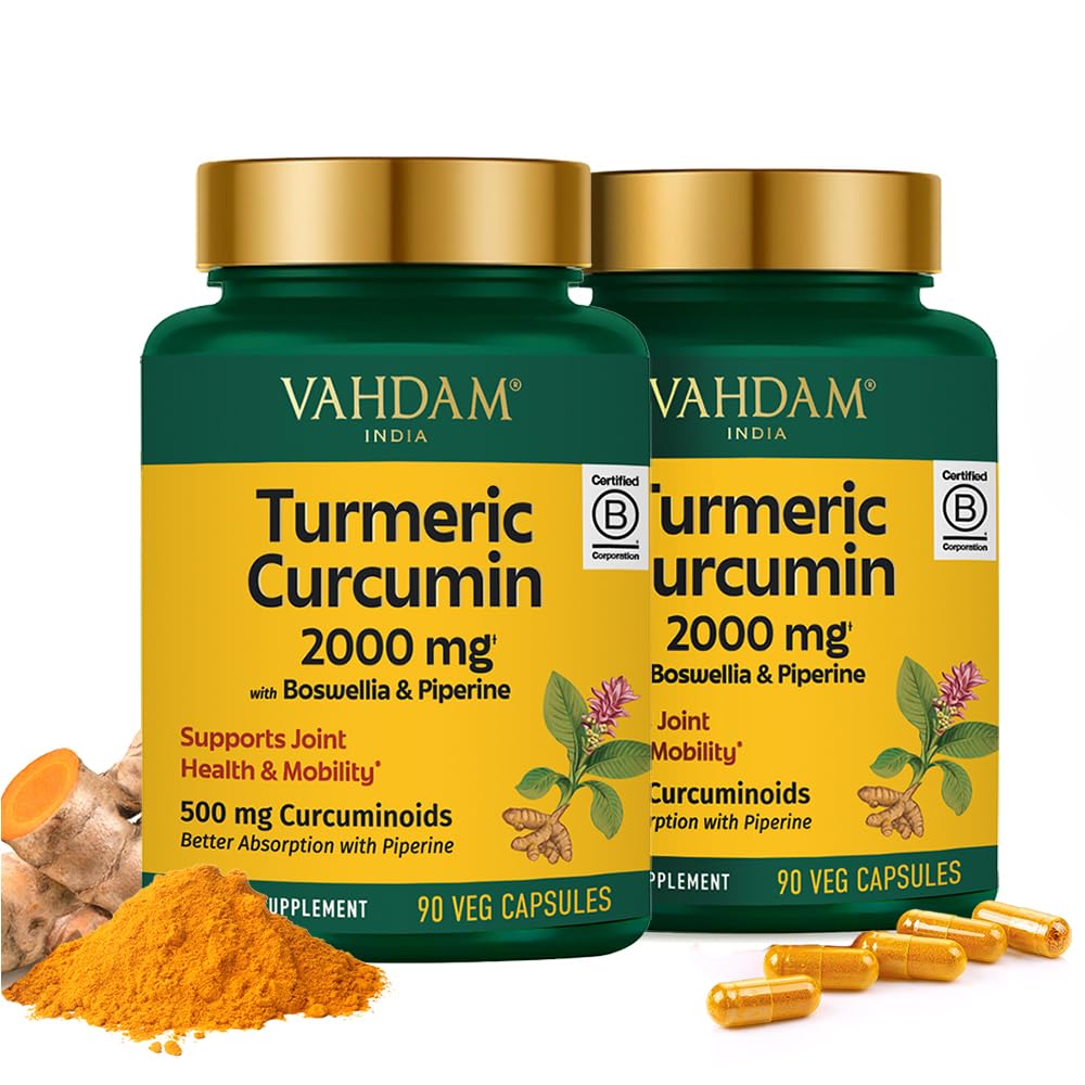 VAHDAM Turmeric Curcumin 2000mg (500mg Curcuminoids) with Boswellia & Piperine for Fast Absorption | Supports Joint Health and Mobility | 90 Capsules (Pack of 2)