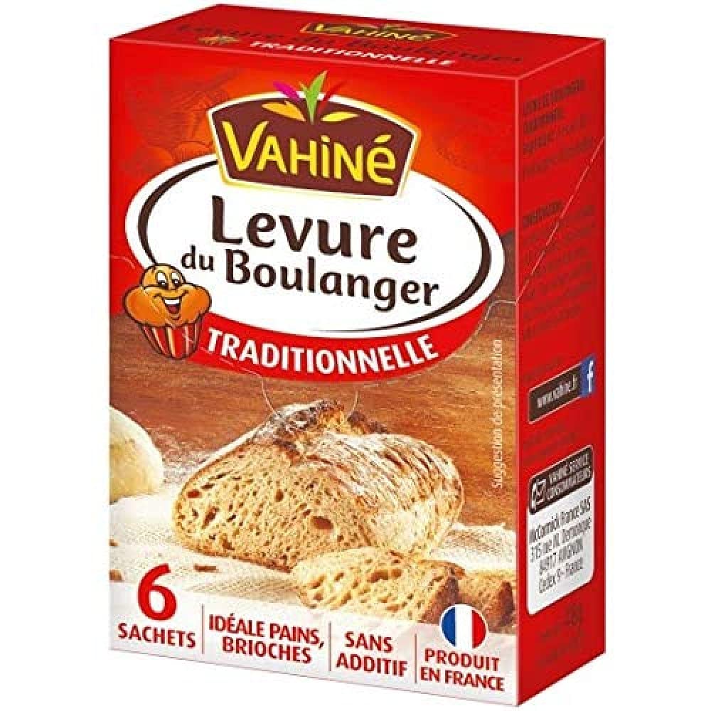 : Essential for making your homemade bread dough rise, Vahiné baker's yeast is easy to use. Pre-measured in individual sachets, it's easy to measure the perfect amount to ensure your dough rises as desired. Plain bread, country bread, or bread with dried fruit, brioche, or even pizza dough. no recipe will be too challenging. Incorporated into your dough, this yeast is the little extra that truly makes a difference. Vahiné, it's well-made! Vahiné has been the partner brand for homemade desserts since 1972, a favorite among the French: a quality, reliable, creative, and innovative brand. The Vahiné brand was launched alongside its older sibling, Ducros, with a slogan that perfectly suits it: "Make desserts!" and product lines that have become essential: Dried Fruits, Sugars, Yeasts, Flavorings, Vanillas, and Decorations. 1 Pour one sachet of Vahiné Traditional Baker's Yeast into two tablespoons of lukewarm water or milk (30 C). 2 Let it rest for 15 minutes and stir. The yeast is now ready to be mixed with your flour. 3 Incorporate all the ingredients (at room temperature). Knead the dough with a stand mixer until it pulls away from the sides of the bowl. Then cover with a cloth. 4 Let the dough rise in a warm place (22-25 C) for a maximum of 4 hours. Composition: Dehydrated baker's yeast. Product of France. store away from heat, light, and humidity. Note: If kneading by hand, use two sachets of Vahiné Traditional Baker's Yeast beforehand instead of one. Ingredients: Dehydrated baker's yeast. P.when('A').execute(function(A) { A.on('a:expander:toggle_description:toggle:collapse', function(data) { window.scroll(0, data.expander. expander[0].offsetTop-100) }) }) Instructions for use: 1 sachet of Traditional Baker's Yeast corresponds to 21g of fresh yeast. See moreVAHINÉ'S COMMITMENT: 2025 objectives: 25 reduction in carbon footprint, 60 recycled content in PET packaging, 100 of plastic packaging reused, recycled, or repurposed. VAHINÉ QUALITY: Product quality is in our DNA. Thanks to our French analytical laboratory, we perform over 50,000 analyses on more than 8,000 samples. With Vahiné baking products, you'll create wonders! EXPERTISE: Because Vahiné wants the best for its consumers, our traditional baker's yeast is additive-free. It promises to give your preparations an authentic taste. Vahiné, it's done right! EASY TO USE: Pour one sachet of baker's yeast into two tablespoons of lukewarm water or milk (30 C). Let it rest for 15 minutes and stir. Vahiné yeast is now ready to be mixed with your flour. SUCCEED WITH YOUR RECIPES: This baker's yeast is your best ally for perfectly rising your sweet or savory doughs. Enjoy plain bread, country loaves, fluffy brioches, or even homemade pizza dough!Description du produit Indispensable pour faire lever vos pâtes à pain maison, la levure du boulanger signée Vahiné est facile à utiliser. Car dosée en sachet indivduel, il est facile de mesurer la parfaite quantité pour faire lever vos pâtes à souhait. Pain nature, pain de campagne ou aux fruits secs, brioche ou encore pâte à pizza. aucune préparation ne saura vous résister. Incorporée à vos pâtons, cette levure est le petit plus qui fait vraiment la différence. Vahiné, c'est bien fait ! Vahiné est la marque partenaire des desserts faits-maison depuis 1972, dans le cœur des Français : une marque de qualité, fiable, créative, et innovante. La marque Vahiné est lancée aux côtés de son grand frère Ducros avec un slogan qui lui va comme un gant « Faites des desserts ! » et des gammes qui deviendront incontournables : Fruits Secs, Sucres, Levures, Arômes, Vanilles et Décors. 1 Versez un sachet de Levure du Boulanger Traditionnelle Vahiné dans deux cuillères à soupe d'eau ou de lait tiède (30 ). 2 Laissez reposer 15 min et délayez. La levure est prête à être mélangée à votre farine. 3 Incorporez tous les ingrédients (à température ambiante). Pétrissez la pâte au robot , jusqu'à ce qu'elle se décolle des parois. Puis couvrir d'un linge. 4 Laissez lever la pâte dans un endroit tiède (22 à 25 ) pendant 4H maximum. Composition : Levure de boulangerie déshydratée. Produit en France. A conserver à l'abri de la chaleur, de la lumière et de l'humidité. Note : si pétrissage à la main, versez 2 sachets de Levure du Boulanger Traditionnelle Vahiné au préalable au lieu d'un. Ingrédients Levure de boulangerie déshydratée. P.when('A').execute(function(A) { A.on('a:expander:toggle_description:toggle:collapse', function(data) { window.scroll(0, data.expander. expander[0].offsetTop-100) }) }) Mode d'emploi 1 sachet de Levure Boulangère Traditionnelle correspond à 21g de levure fraîche. Voir plusVAHINÉ S'ENGAGE : objectifs en 2025 : 25 de réduction de l'empreinte carbone, 60 de matières recyclées dans les emballages PET, 100 de des emballages plastiques réutilisés, recyclés ou revalorisés. LA QUALITÉ VAHINÉ : La qualité produit est notre ADN. Grâce à notre laboratoire d'analyses français, nous réalisons plus de 50 000 analyses sur plus de 8 000 échantillons. Avec les produits de pâtisserie Vahiné, vous ferez des merveilles !. SAVOIR-FAIRE : Car Vahiné souhaite le meilleur pour ses consommateurs, la levure du boulanger traditionnelle est une levure sans aucun additif. Elle promet de donner à vos préparations un goût authentique. Vahiné, c'est bien fait !. FACILE D'UTILISATION : Versez un sachet de levure du boulanger dans deux cuillères à soupe d'eau ou de lait tiède (30 ). Laissez reposer 15 min et délayez. La levure Vahiné est alors prête à être mélangée à votre farine. RÉUSSISSEZ VOS RECETTES : Cette levure du boulanger est votre meilleur allié pour faire parfaitement lever vos pâtes salées ou sucrées. A vous les pains nature, de campagnes, les brioches gonflées ou encore les pâtes à pizza maison !.VAHINÉ - Levure Du Boulanger Classique - Idéale Pain et Brioches - 6 sachets de 8g