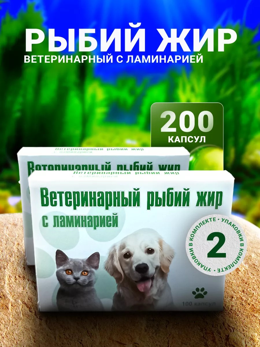 Рыбий жир для собак и кошек с ламинарией 2 уп. по 100 капсул