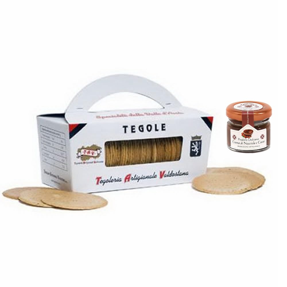 DESCRIPTION DU PRODUIT DESCRIPTION DU PRODUIT Biscuit typique et délicieux créé par certains pâtissiers valdostains en 1930. Devenu au fil des années une référence et une excellente carte de visite pour la Vallée d'Aoste. Ingrédients noisettes, sucre, blanc d'œuf, farine 00 et amidon de maïs. Tous les ingrédients sont naturels, ne contiennent pas de conservateurs, c'est un produit sans organismes génétiquement modifiés, sans OGM. Conserver dans un endroit frais et sec Tuiles artisanales - le biscuit typique valdostane. Emballage 300 g. pot crème de noisette et cacao Alpenzu de 28 g INGRÉDIENTS noisettes