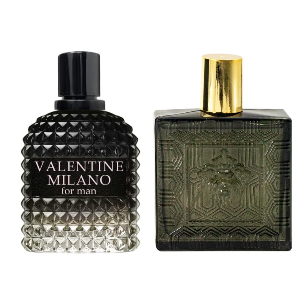 Valentine Milano for Men (EDP) & Lion Versatile Black Flame Cologne For Men (EDT) Fragrance for Men 3.4 Fl Oz Each (Pack of 2)