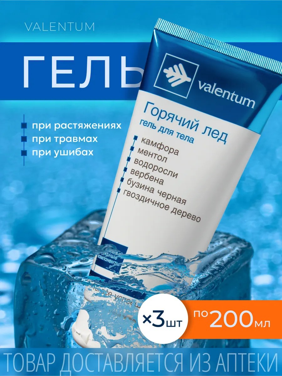Принцип действия горячего льда: Уменьшение неприятных ощущений + быстрый энергетический заряд + прилив сил и бодрости на весь день. В горячем льде отсутствуют искусственные отдушки, ароматизаторы, парабены и продукты животного происхождения. Натуральные активные компоненты VALENTUM (камфора, ментол, водоросли, вербена, бузина черная, гвоздичное дерево) обеспечивает эффективное воздействие и ощутимый результат. Держите его в ящике стола, бардачке автомобиля, берите его его с собой в путешествия, на природу. Обезболивающий гель для тела Валентум поможет всегда оставаться в движении и сохранять высокое качество жизни.