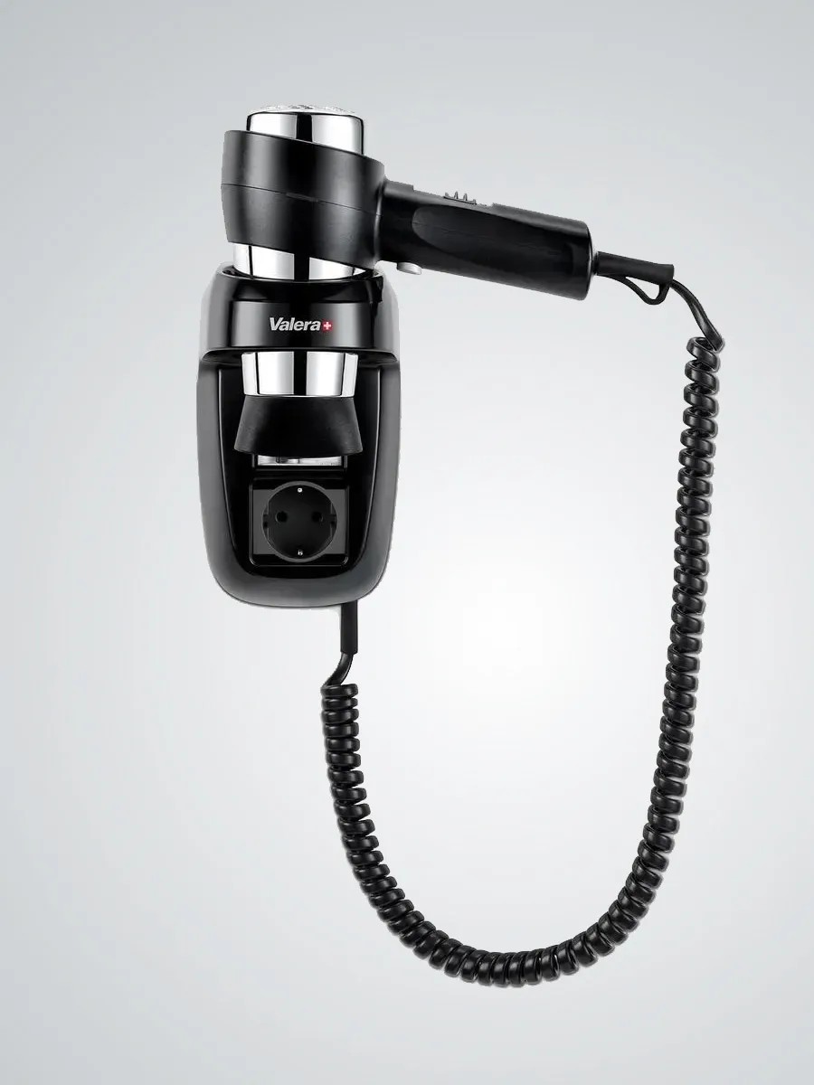 The wall-mounted hair dryer Valera Action Protect 1600 Socket is a multifunctional device that combines powerful hair drying with an additional socket for an electric shaver.