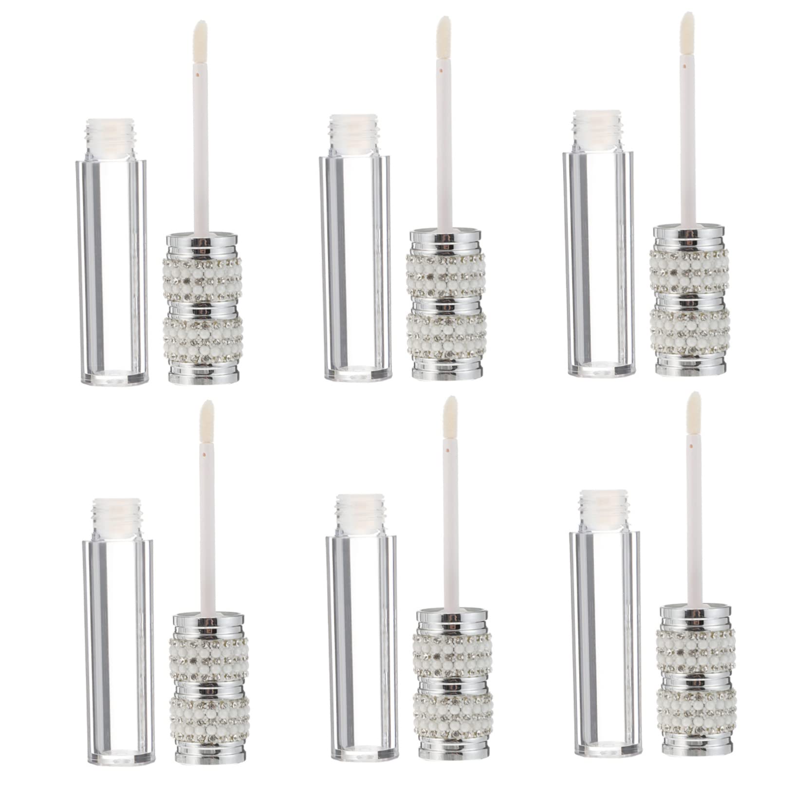 VALICLUD 6pièces Lot de Tubes de Gloss à Lèvres Vides Plastique Ornés de Strass avec Applicateur Pinceau à Personnaliser Soi-même