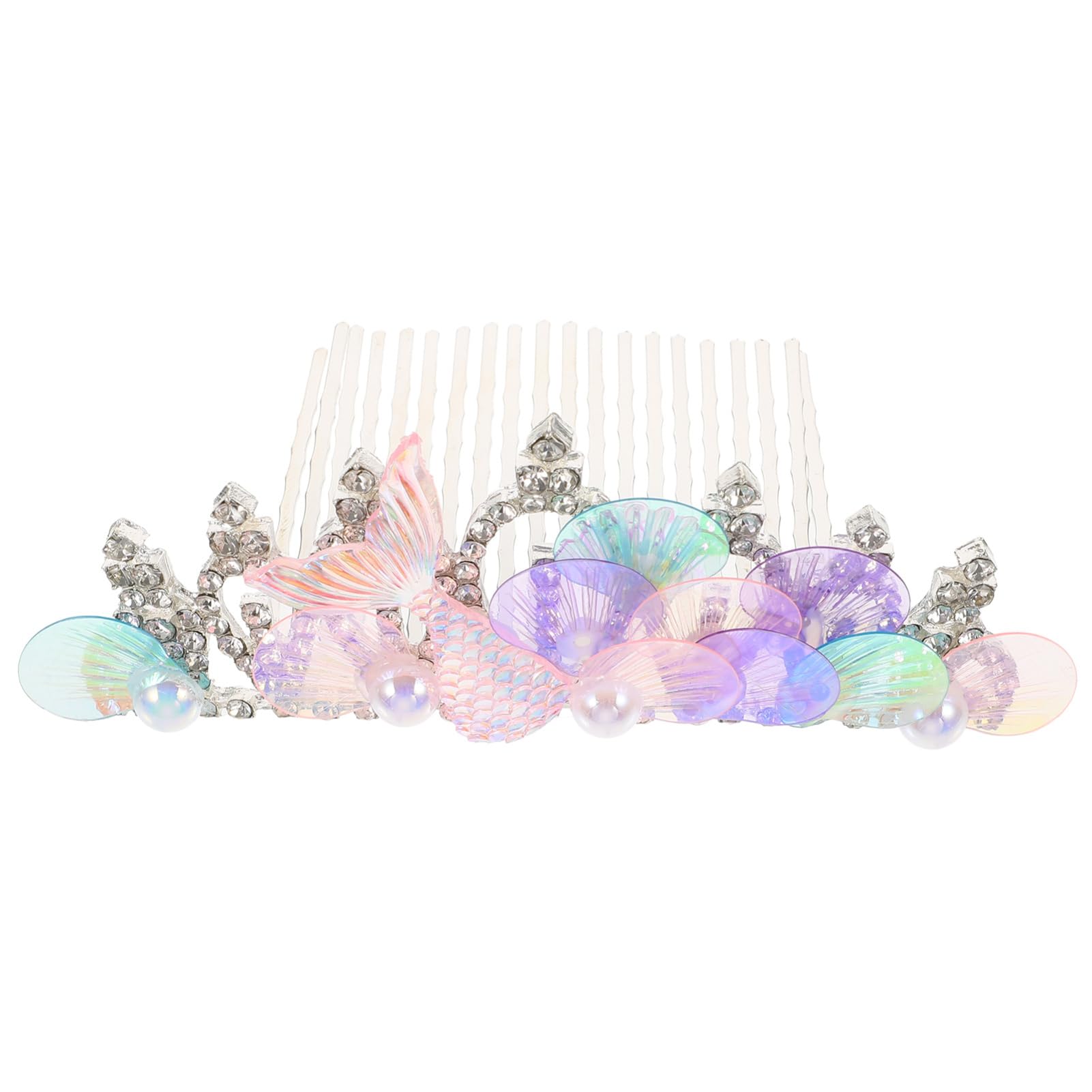 Description Mermaid Hair Side Comb Rhinestone Headdress Female Side Hair Comb for Daily Wear Features Material:Plastic, zinc alloy, imitation pearl Size:11.00X6.00X4.20cm/4.32X2.36X1.65in Package Including 1 x hair side comb