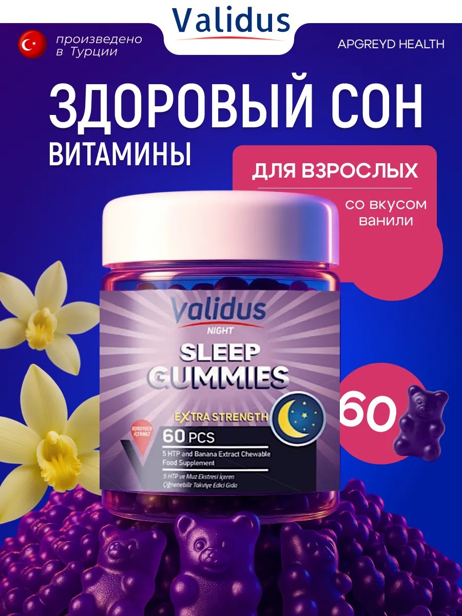Validus Sleep Gummies для сна 60 жевательных мармеладок