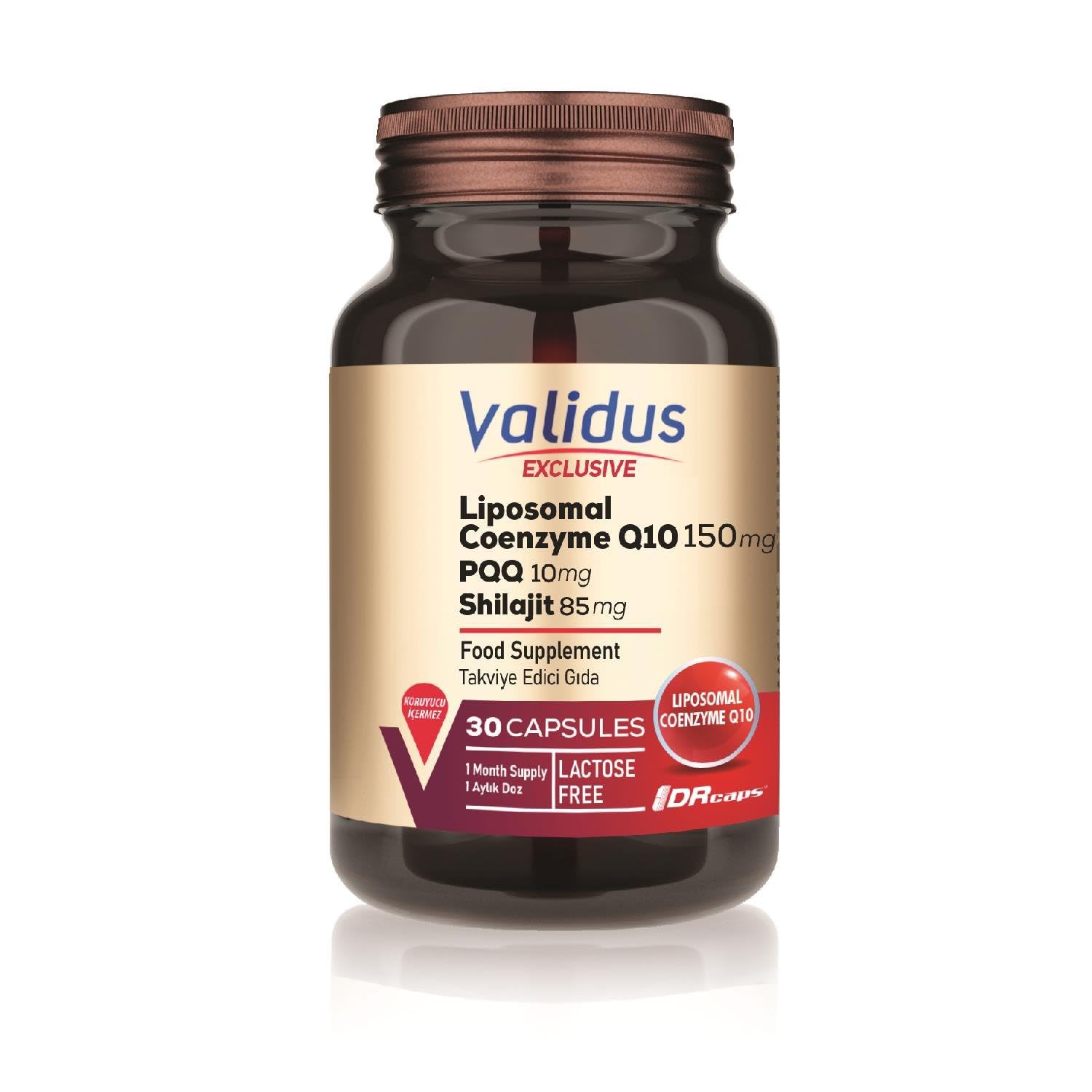 Validus Liposomal Coenzyme Q10 150 mg PQQ Shilajit 30 Capsules Preservatives Free Sweeteners Free Gluten Free lactose Free It is produced using special actives obtained from standardized extracts. THE RIGHT ADDRESS FOR A HEALTHY LIFE!. High Quality Products High-Level Experience Expert Team Regular Quality Control Sustainable Raw Materials We began with the goal of providing our consumers with world-class quality Food Supplement products, and since 2003, we have grown to become one of Turkey's most inventive production and marketing firms. We have produced in modern and sanitary conditions in the facility we established for food supplements, meeting world standards. We hold ISO 9001, ISO 22000, ISO 22716, ISO 13485, and Ministry of Health GMP certifications from approved companies