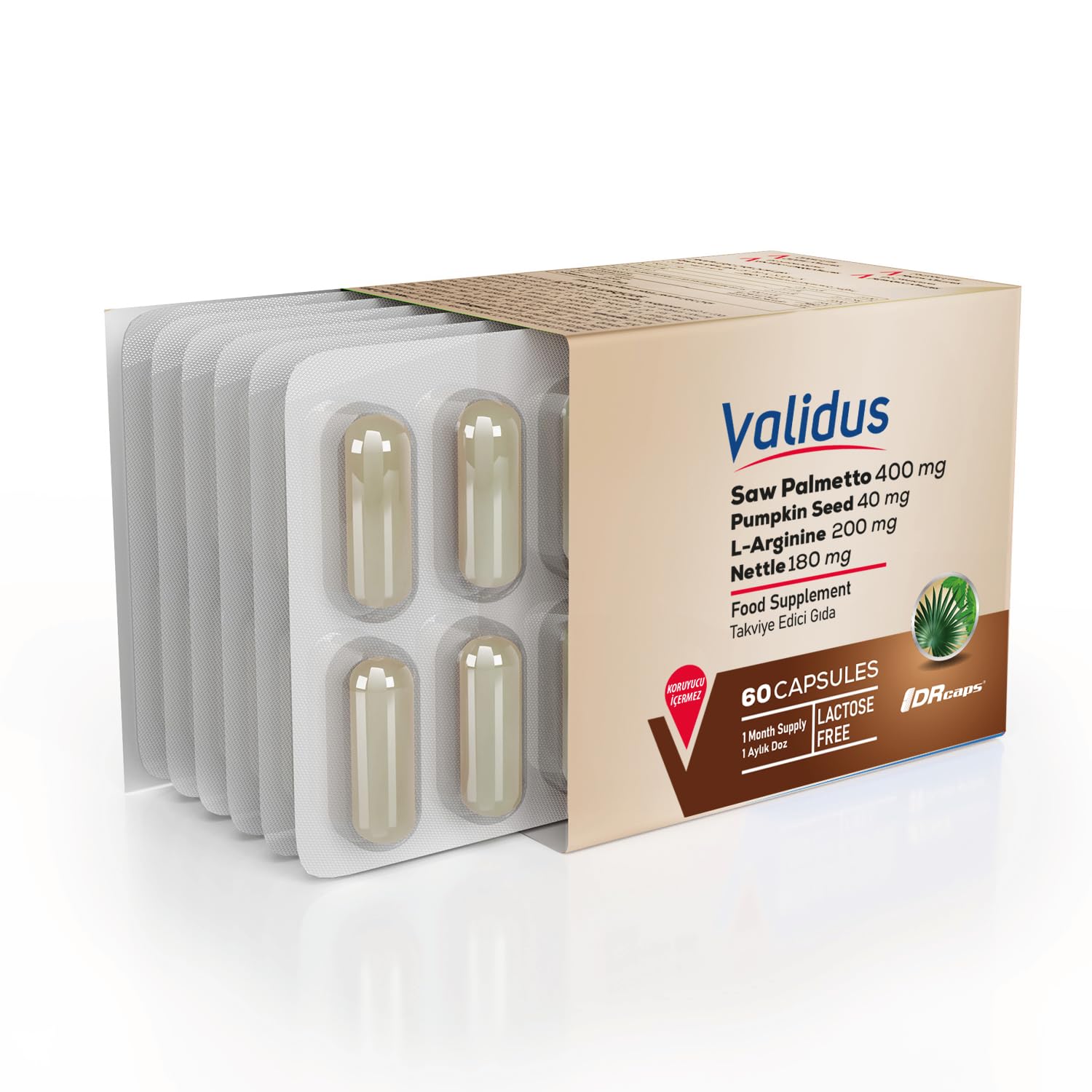 Validus Saw Palmetto 400 mg L-Arginine Pumpkin Seed Lycopene 60 Capsules Stock Code(8683744978204) Preservatives Free Sweeteners Free Gluten Free lactose Free It is produced using special actives obtained from standardized extracts. THE RIGHT ADDRESS FOR A HEALTHY LIFE!. High Quality Products High-Level Experience Expert Team Regular Quality Control Sustainable Raw Materials We began with the goal of providing our consumers with world-class quality Food Supplement products, and since 2003, we have grown to become one of Turkey's most inventive production and marketing firms. We have produced in modern and sanitary conditions in the facility we established for food supplements, meeting world standards. We hold ISO 9001, ISO 22000, ISO 22716, ISO 13485, and Ministry of Health GMP certifications from approved companies