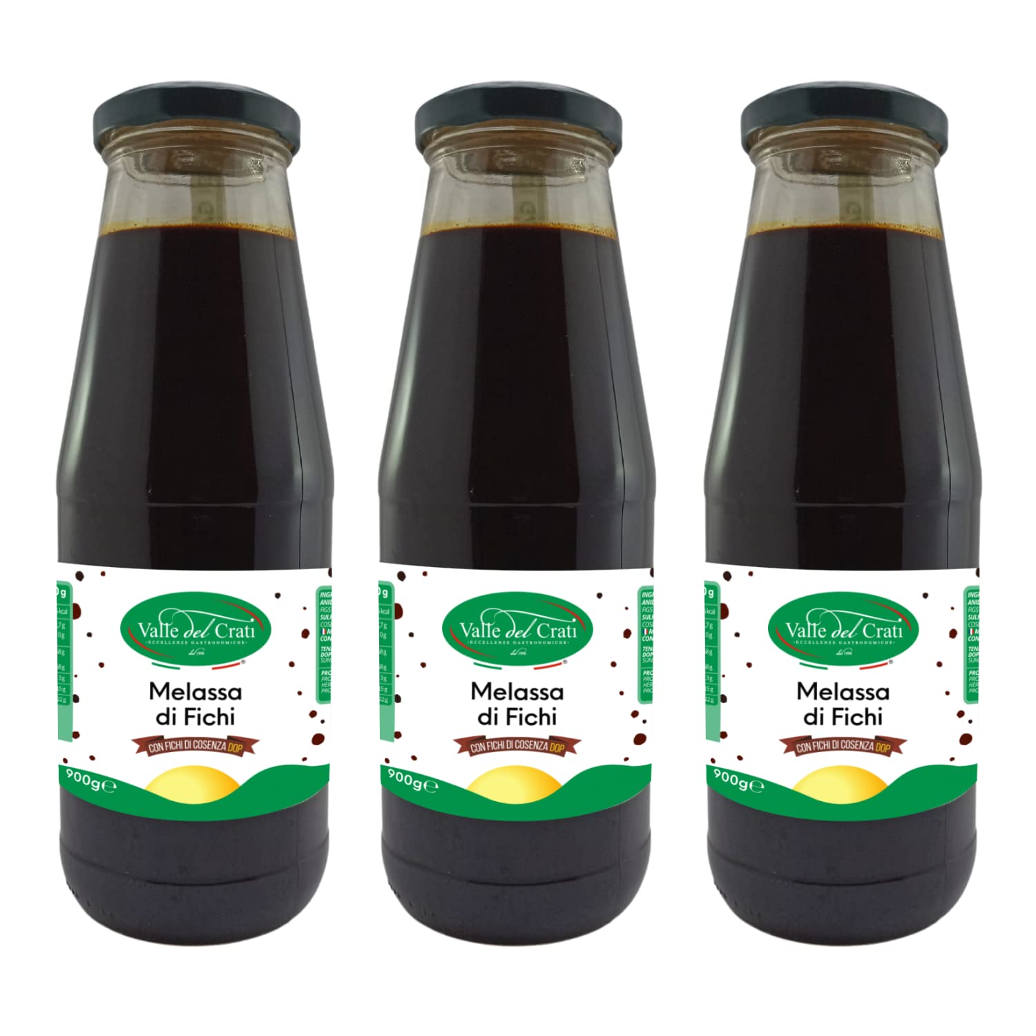 Valle del Crati Fig Molasses | Honey with figs from Cosenza Italian specialty | Condiment on cheeses meats on sweets yogurts ice creams | 3 bottles of 900 g each