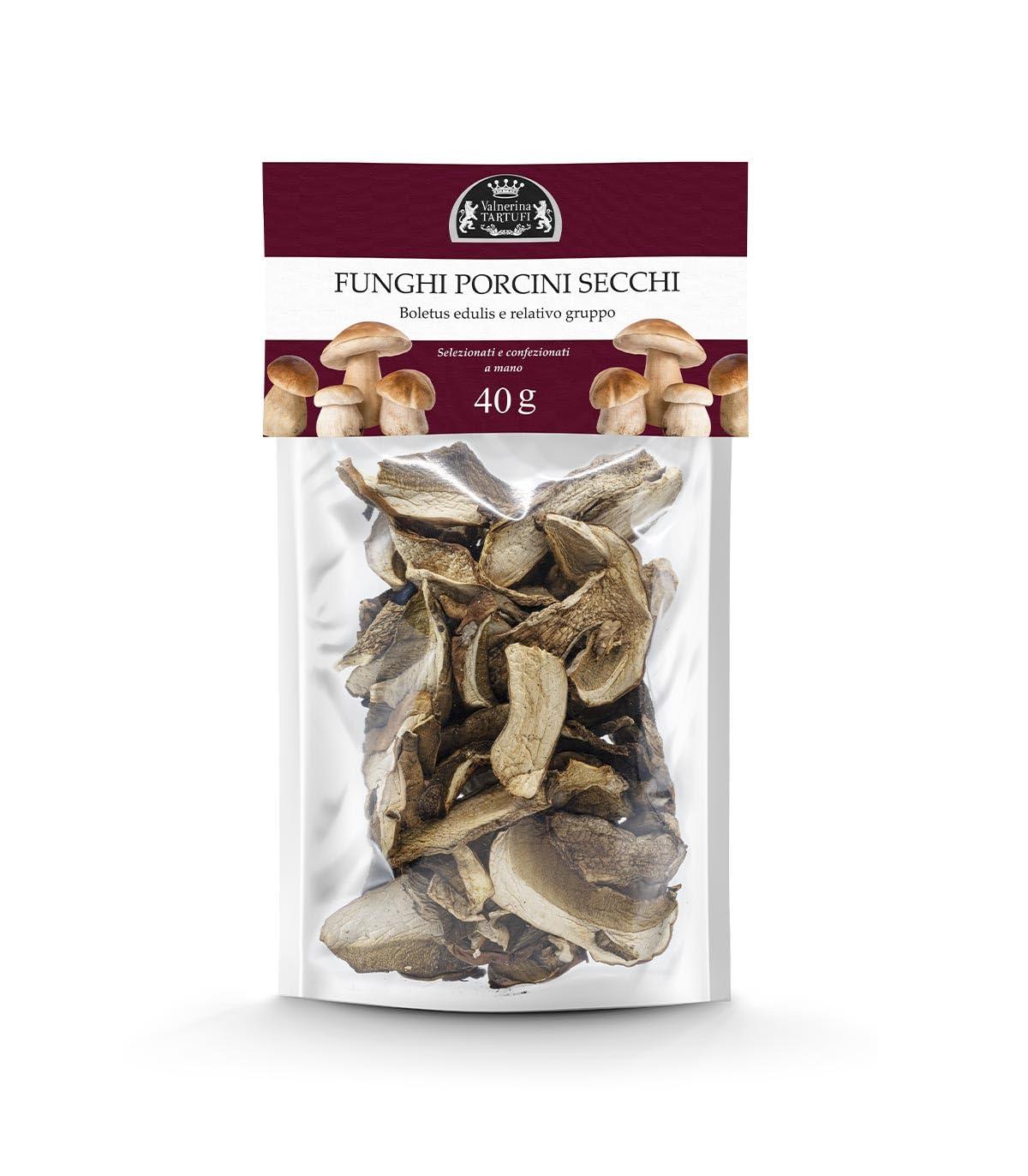 Dried porcini mushrooms are a culinary treasure prized for their intense flavor and versatility. These mushrooms, also known as Boletus edulis, are widespread in many parts of the world and are especially valued for their meaty texture and characteristic earthy aroma. The quality of dried porcini mushrooms is often superior to fresh mushrooms, as the drying process concentrates the flavors, giving them a unique depth and complexity. The texture remains robust, and once rehydrated, the porcini mushrooms return to a texture similar to fresh ones. The culinary uses of dried porcini mushrooms are extremely versatile. They can be used to prepare broths, sauces, risottos, seasonings, and many other dishes. Ideal for seasoning bruschetta, pasta, meat dishes, and polenta. The rehydration process is simple: just soak the mushrooms in hot water for a while until they soften. The water used during rehydration becomes a valuable aromatic broth, perfect for further enriching dishes. The rich and intense flavor of dried prickly pear mushrooms adds depth and complexity to dishes, making them irresistible. They are often used to enhance the flavor of risottos, pasta, meats, and even soups. Their presence can transform a simple dish into a sophisticated gastronomic experience. Dried prickly pear mushrooms are valued for their durability and practicality. They can be stored for a long time without losing their quality, making them a valuable ingredient to always have on hand in the kitchen. Storage and Use Instructions: Store the product in a cool, dry place. Consume the product after rehydration and proper cooking. Expiration date: 12 months from the packaging date INGREDIENTS Dried hog mushrooms (Boletus edulis) and related groupValnerina Tartufi Cèpes séchés Sélectionnés et emballés à la main Spécialité Gastronomique Pack 40 gr.DESCRIPTION DU PRODUIT DESCRIPTION DU PRODUIT Les cèpes séchés sont un trésor culinaire apprécié pour leur intensité de saveur et leur polyvalence dans la cuisine. Ces champignons, également connus sous le nom de « Boletus edulis », sont répandus dans de nombreuses régions du monde et sont particulièrement appréciés pour leur texture charnue et leur arôme terreux caractéristique. La qualité des cèpes séchés est souvent supérieure aux champignons frais, car le processus de séchage concentre les saveurs, leur conférant une profondeur et une complexité uniques. La texture reste robuste, et une fois réhydratés, les cèpes reviennent à une texture similaire à celle fraîche. L'utilisation en cuisine des champignons porcs séchés est extrêmement polyvalente. Ils peuvent être utilisés pour préparer des bouillons, des sauces, des risotti, des assaisonnements et de nombreux autres Idéal pour assaisonner bruschettes, pâtes, secondes de viande, polenta. Le processus de réhydratation est simple : il suffit de tremper les champignons dans l'eau chaude pendant un certain temps jusqu'à ce qu'ils redeviennent doux. L'eau utilisée pendant la réhydratation devient un précieux bouillon aromatique, parfait pour enrichir davantage les plats La saveur riche et intense des champignons porcs séchés ajoute de la profondeur et de la complexité aux plats, les rendant irrésistibles. Ils sont souvent utilisés pour élever le goût des risotti, des pâtes, des viandes, et même des soupes. Leur présence peut transformer un plat commun en une expérience gastronomique sophistiquée. Les champignons porcs séchés sont appréciés pour leur durabilité et leur praticité. Ils peuvent être conservés longtemps sans perdre leur qualité, ce qui en fait un ingrédient précieux à avoir toujours à disposition dans la cuisine. Mode de conservation et d'utilisation. Conserver le produit dans un endroit frais et sec. Le produit est à consommer après réhydratation et cuisson adéquate. Date d'expiration : 12 mois à compter de la date de conditionnement INGRÉDIENTS Champignons porcs séchés (boletus edulis) et groupe correspondant