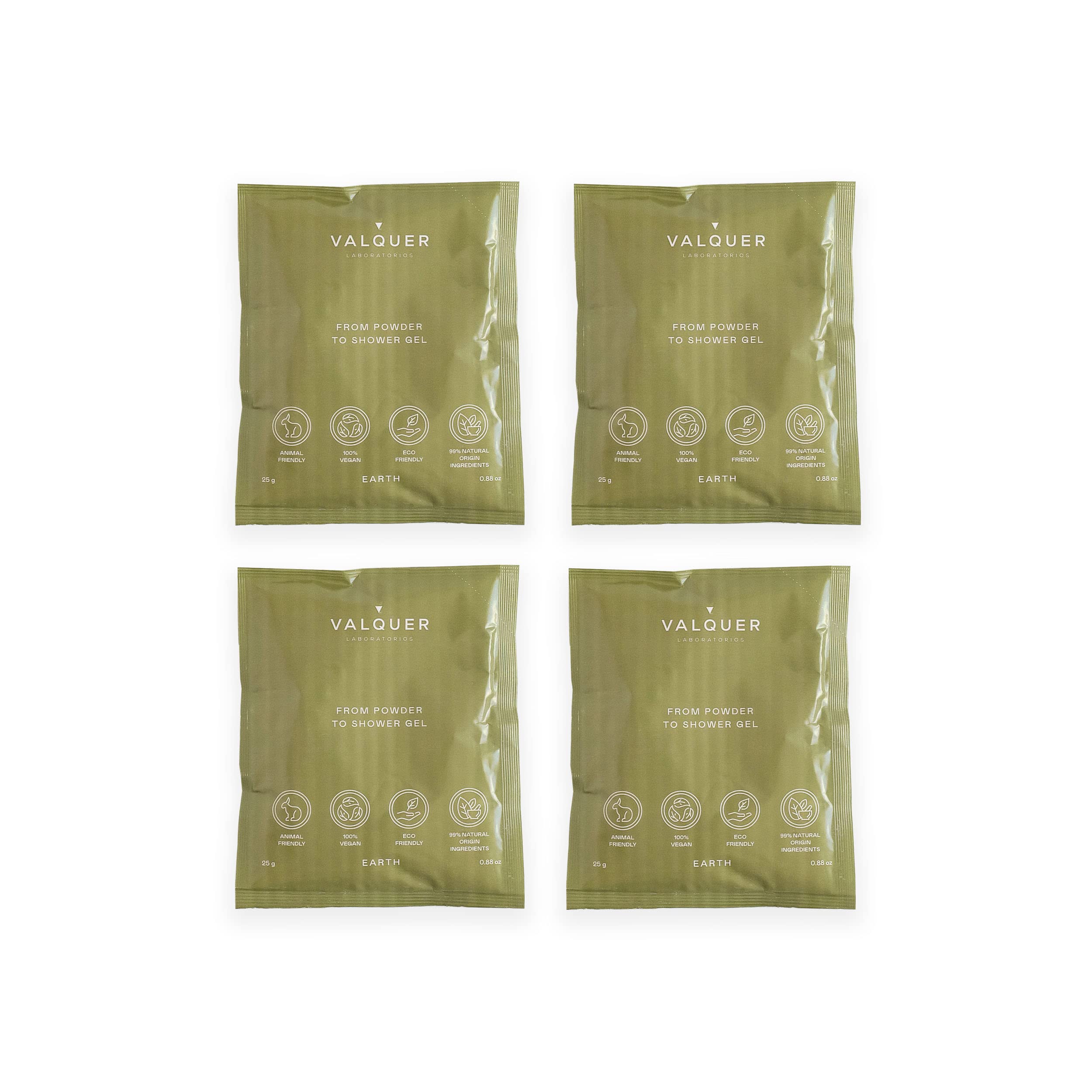 Valquer Laboratorios Valquer Shake Pack of 4 Lasting Bath Gel Refills - One Bottle Endless Gels Zero Waste 25 grams 400 ml Gel - 4 Earth Sachets of 25 g