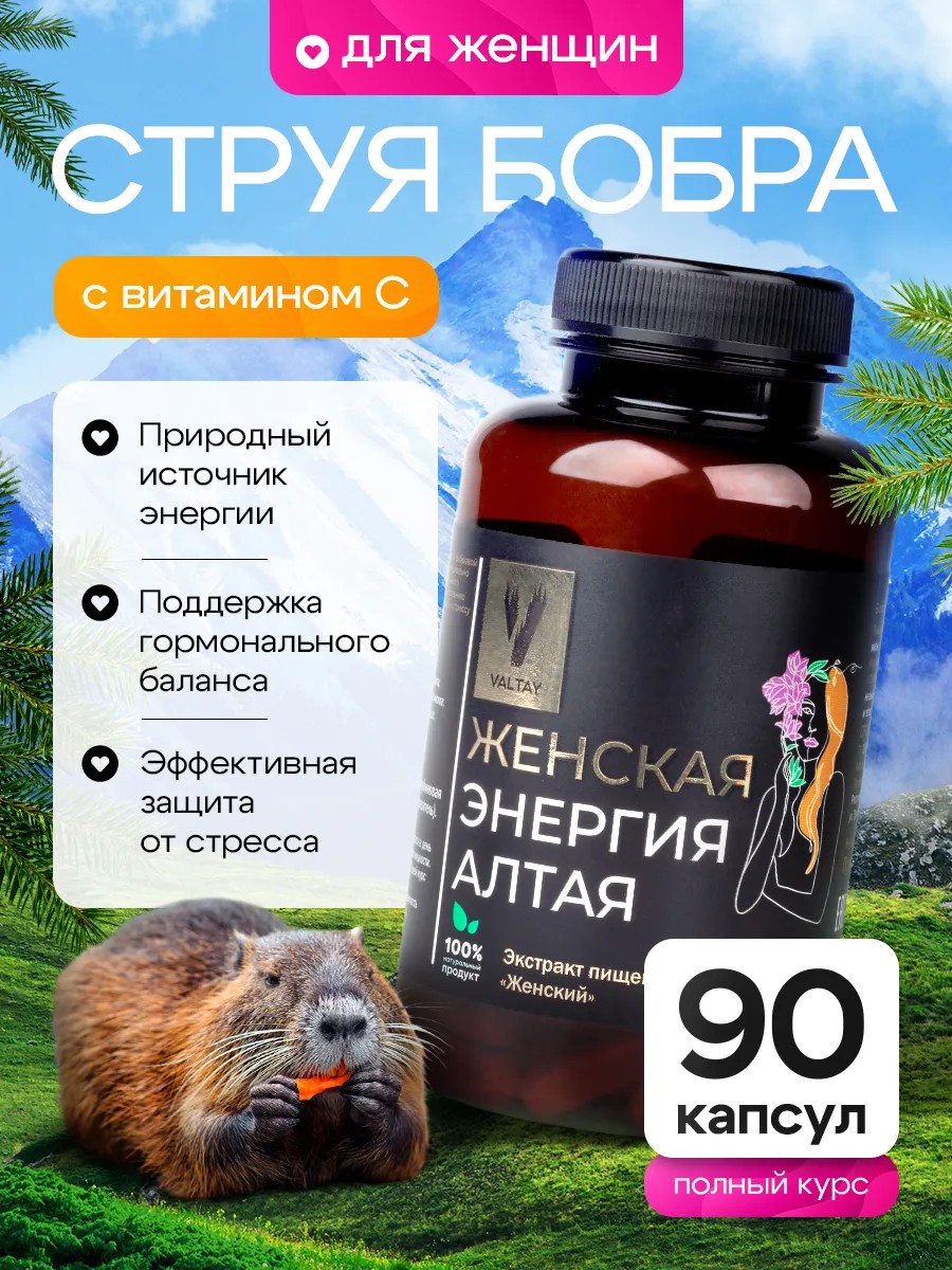 Концентрат пищевой «Женская энергия Алтая» Бобровая струя с витамином С VALTAY — это уникальный, натуральный биоконцентрат на основе экстракта бобровой струи с добавлением витамина С, созданный специально для поддержания женского здоровья, гормонального баланса и жизненного тонуса. Способствует укреплению иммунитета, повышению энергии и устойчивости к стрессам.