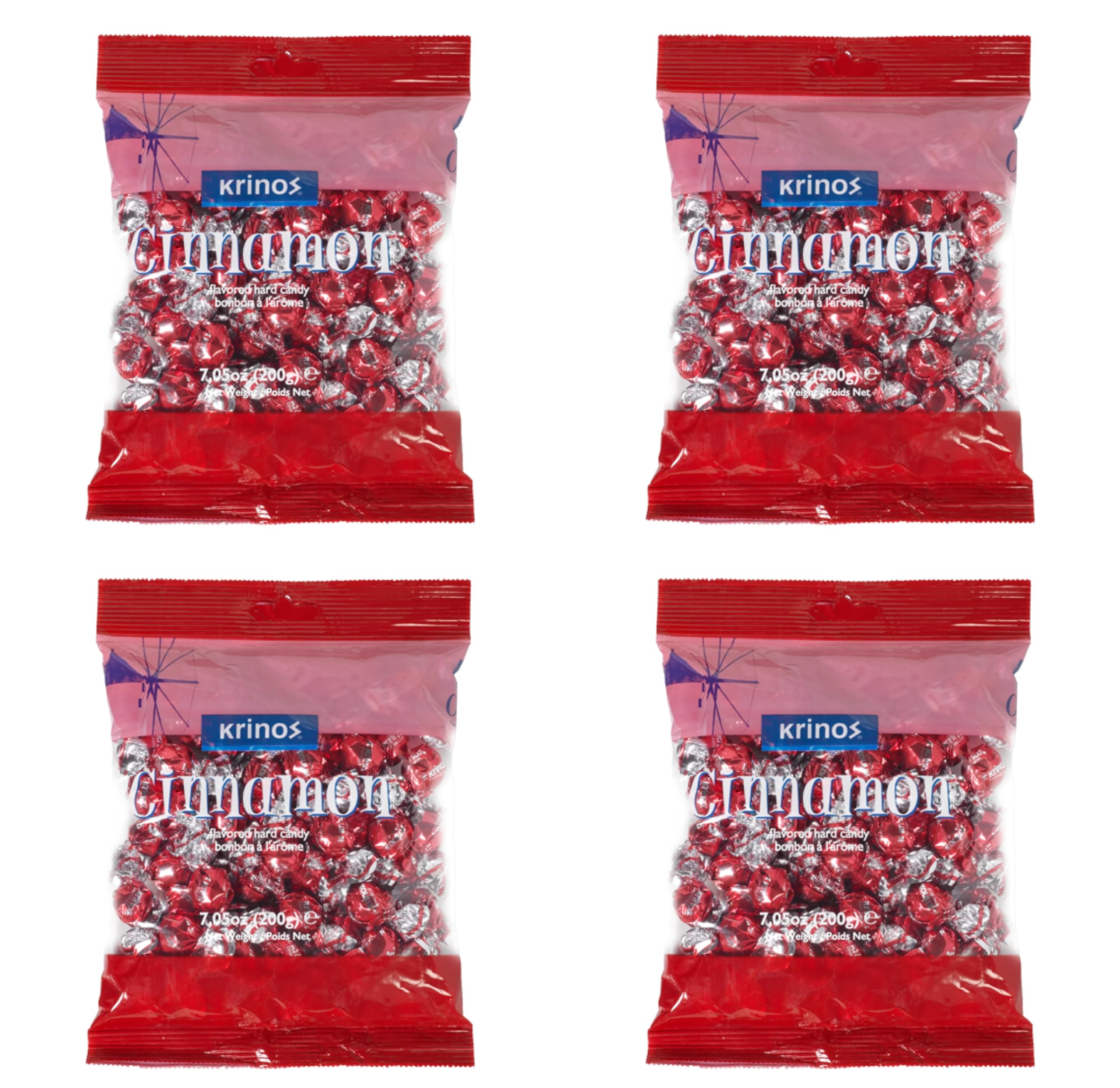 Value Bundle: Krinos Cinnamon Flavoured Hard Candy - 200g - Candy Bulk - Bonbon - Candies - Pack of 4