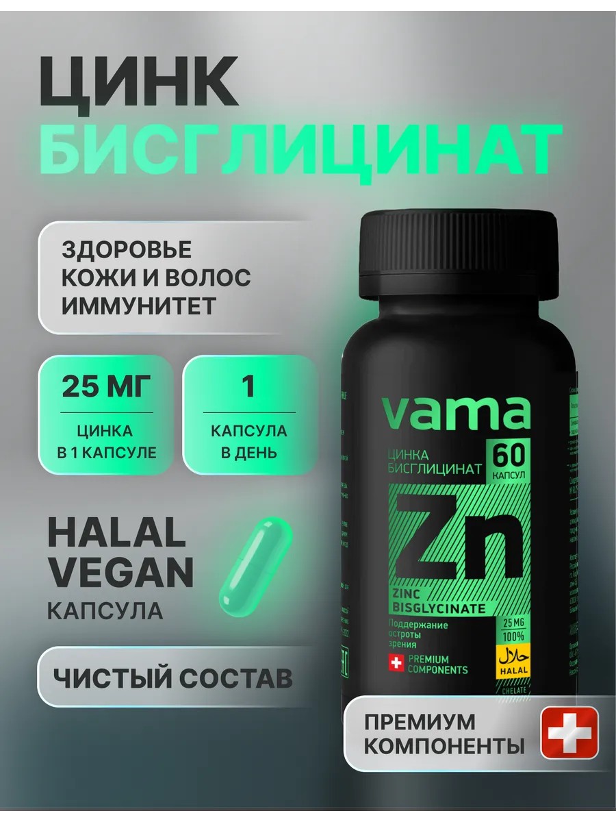 VAMA Цинк бисглицинат халяль