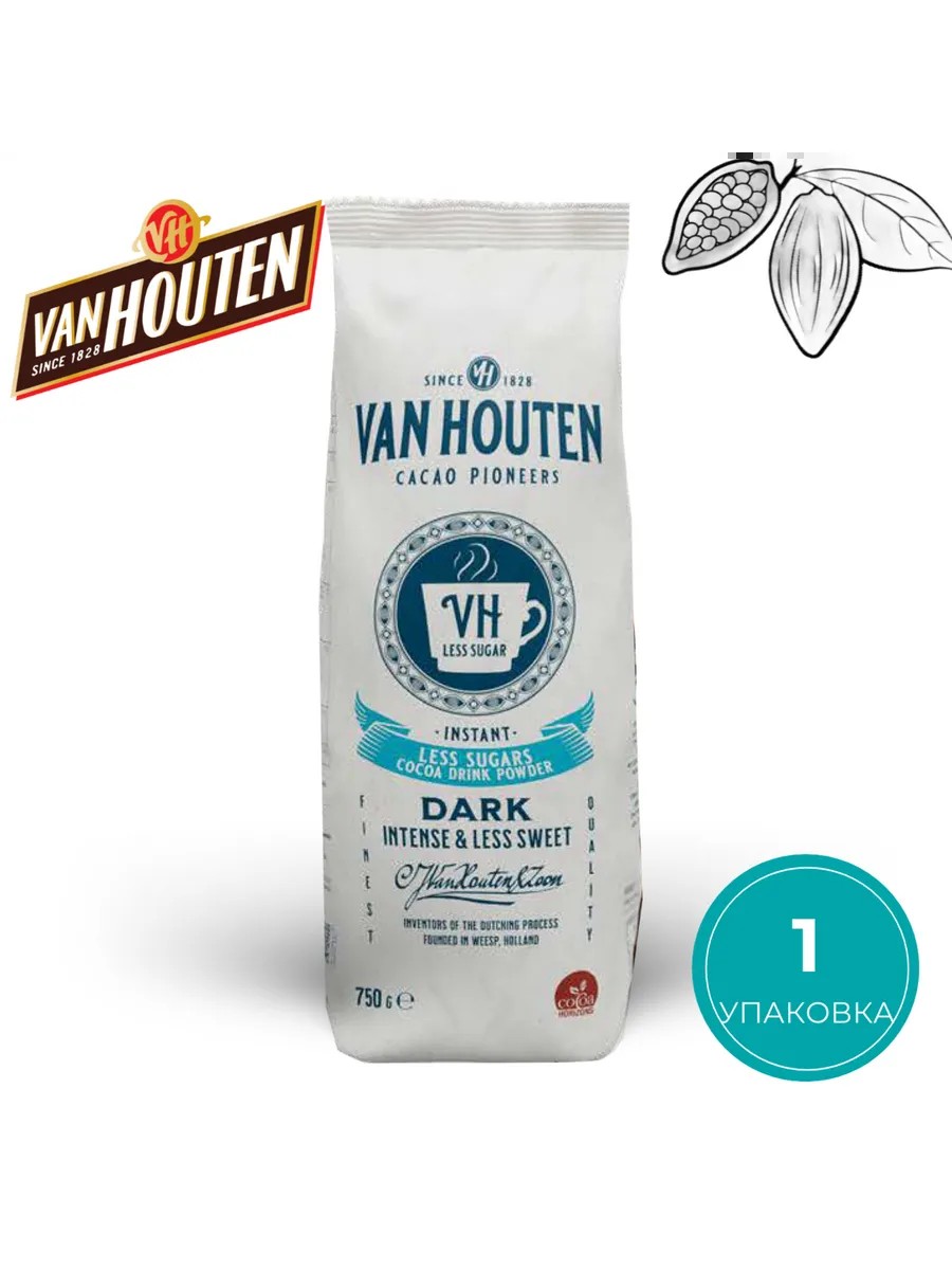 Быстрорастворимый Какао напиток Van Houten Less Sugar UTZ, известного голандского бренда Van Houten, производителя Barry Callebaut. Продукт готовый к употреблению с пониженным на 50 % содержанием сахара. Богатый вкус какао делает этот напиток идеальным для требовательных и заботящихся о своем здоровье потребителях. И при этом требуется меньшая дозировка на чашку. Специально созданный для использования в автоматических кофемашинах с функцией приготовления продукта горячий шоколад, также отлично подходит для ручного приготовления напитка и дома и в офисе. Продукт уже содержит сахар и сухое молоко и готов к употреблению после разбавления горячей водой. Van Houten старейший голландский бренд, представляющий оригинальную продукцию. Компания прошла огромный путь с 1806 года начиная от открытия первого магазина. А уже в 1815 в Амстердаме был произведен какао и шоколад под брендом Van Houten.