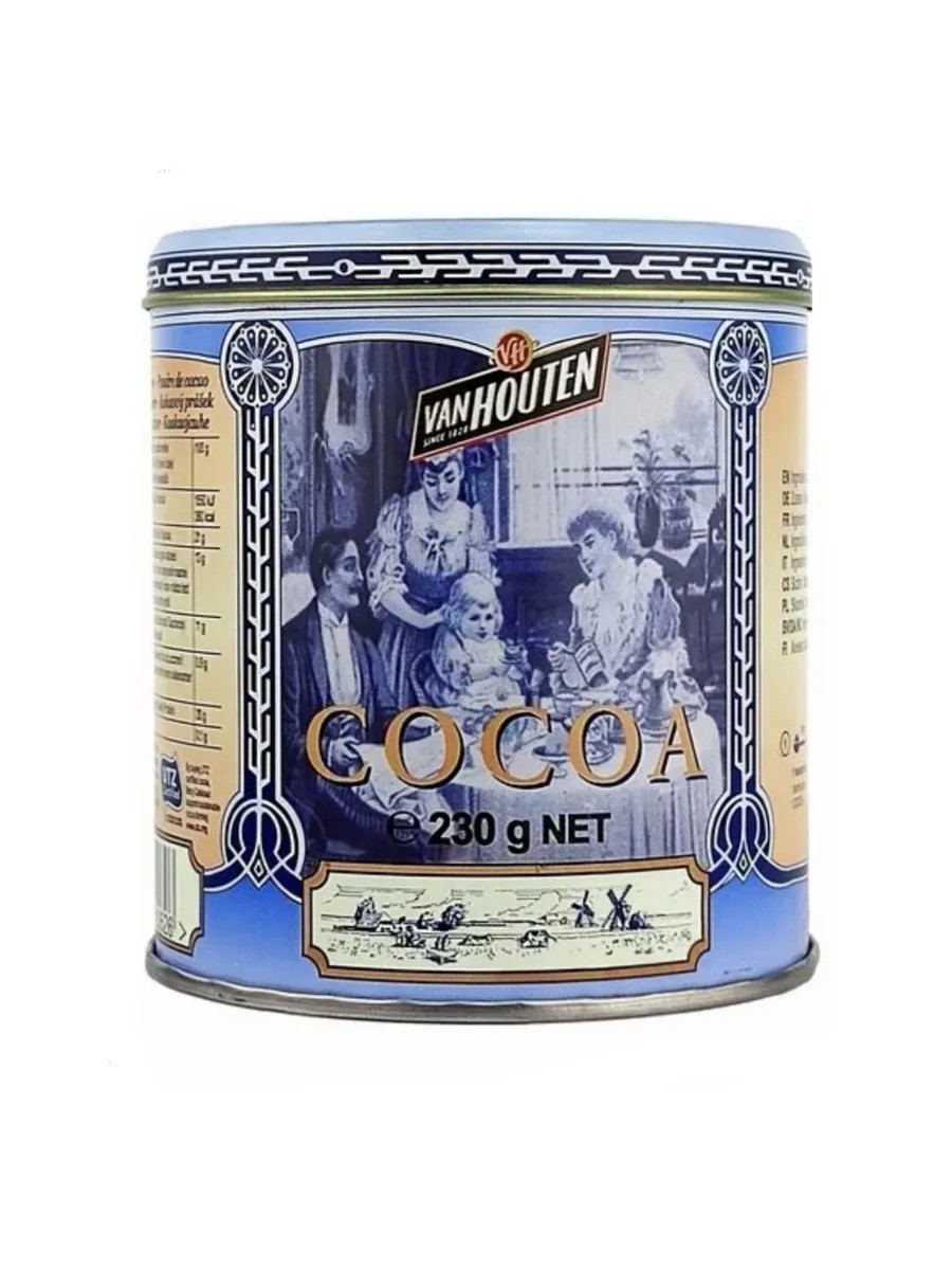 Оригинальный какао порошок премиум-класса в коллекционной жестяной банке Van Houten.