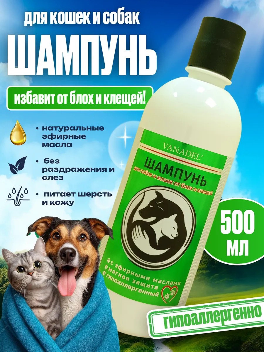 VANADEL Шампунь для собак и кошек от блох и клещей
