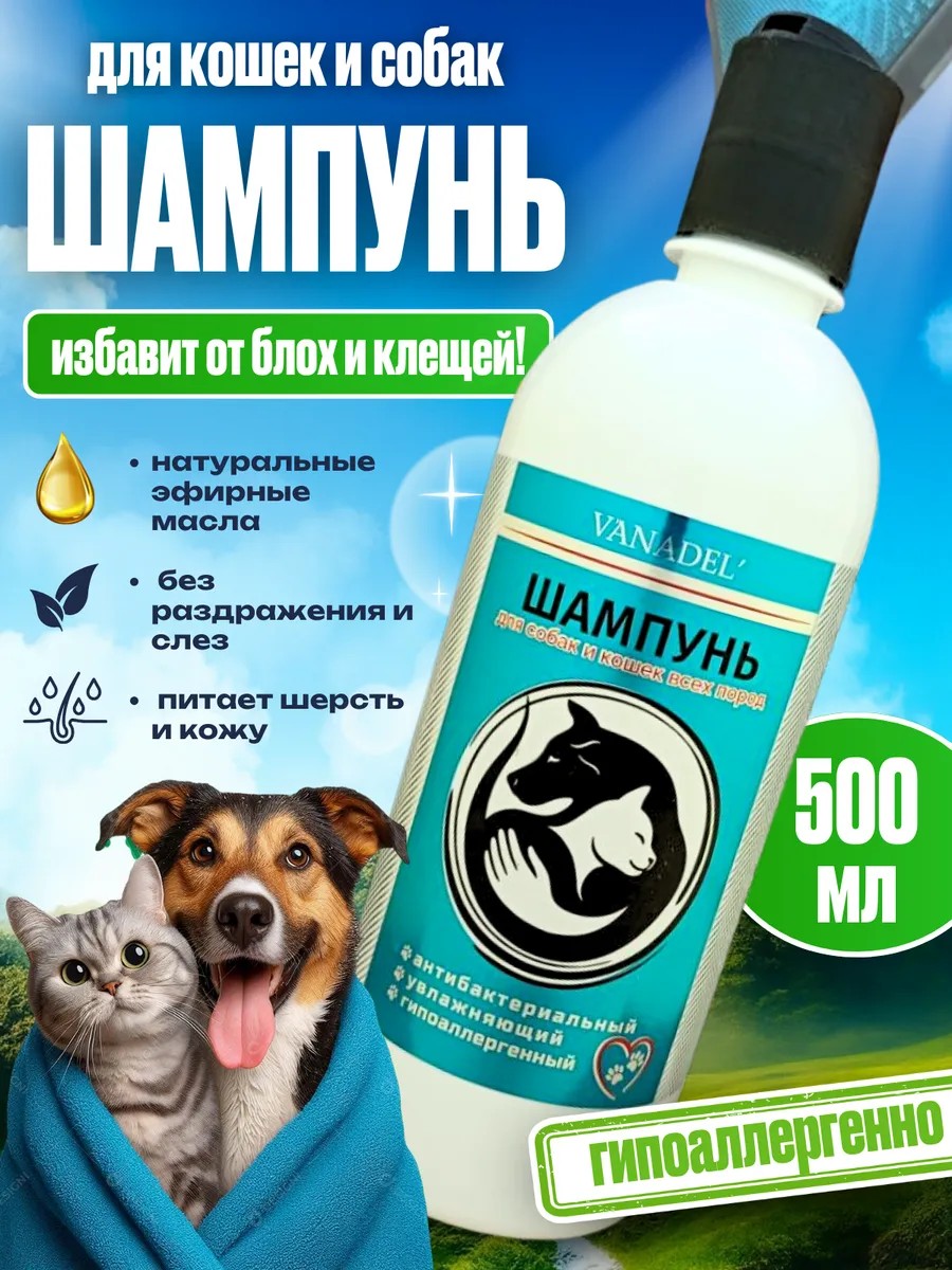 VANADEL Шампунь для собак и кошек всех пород от блох и клещей