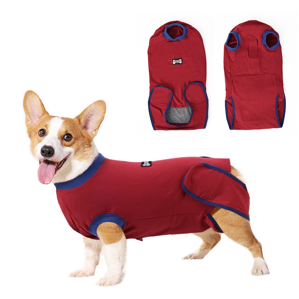 Vanansa Dog Post Surgery Suit Dog Surgery Recovery Suit Prevent Licking Dog Onesie Male/Female Large Medium Dog Red XL Red XL