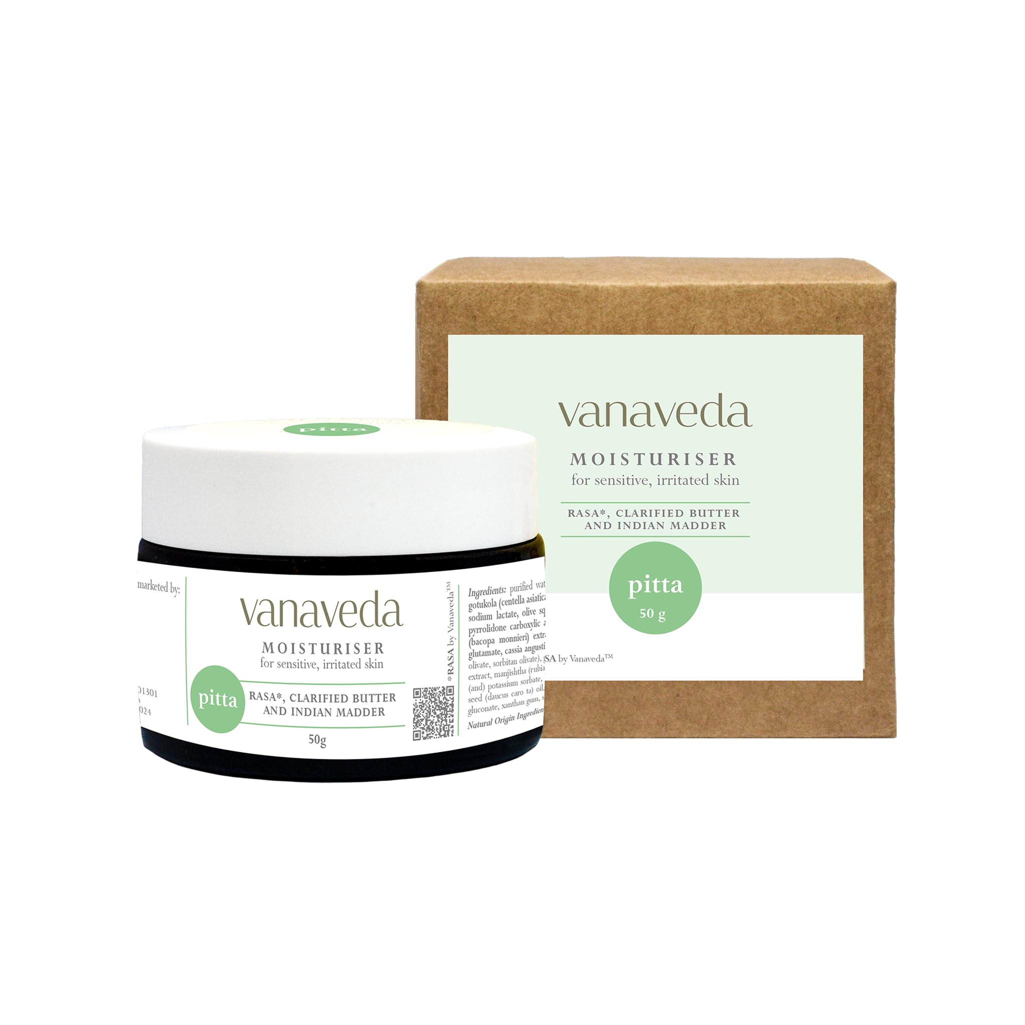 Vanaveda Moisturiser Pitta for Sensitive Inflamed Skin with Zinc Oxide Cow Ghee & Manjishtha | Dosha Balancing Pitta Skincare | Sun Protection | 50g