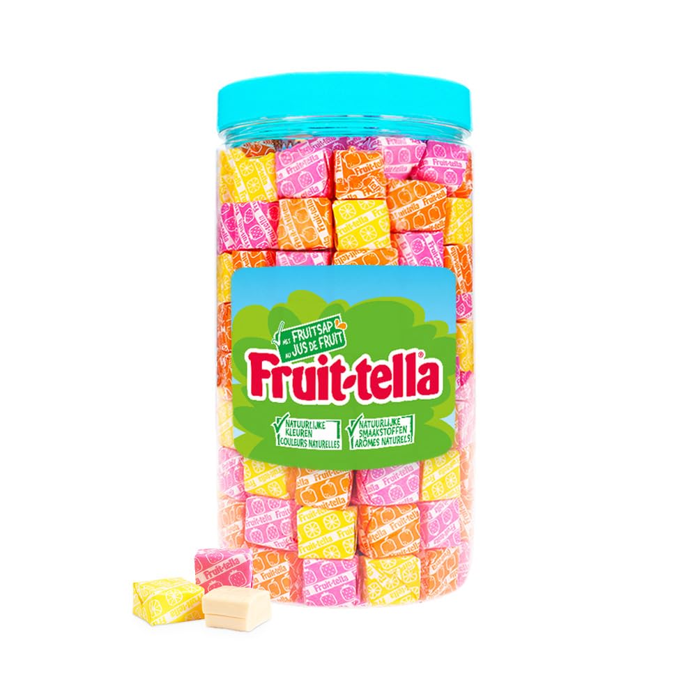 Discover a reusable jar filled with 1kg of Fruit-tella 'Summer Fruits' candies, among the most popular sweets worldwide! These delicious candies offer the fruity flavors of strawberry, orange, and lemon, perfect for refreshing your taste buds on hot summer days. Their irresistible taste and pleasant texture make them a must-have for all summer occasions. Whether you're livening up a party, sharing with friends, or enjoying with family, these Fruit-tella 'Summer Fruits' candies are an ideal choice.