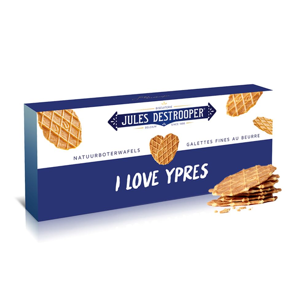Jules Destrooper galettes fines au beurre - "I love Ypres J'aime Ypres" - biscuits belges authentiques - cadeau de biscuits - 2 boîtes - 100g x 2