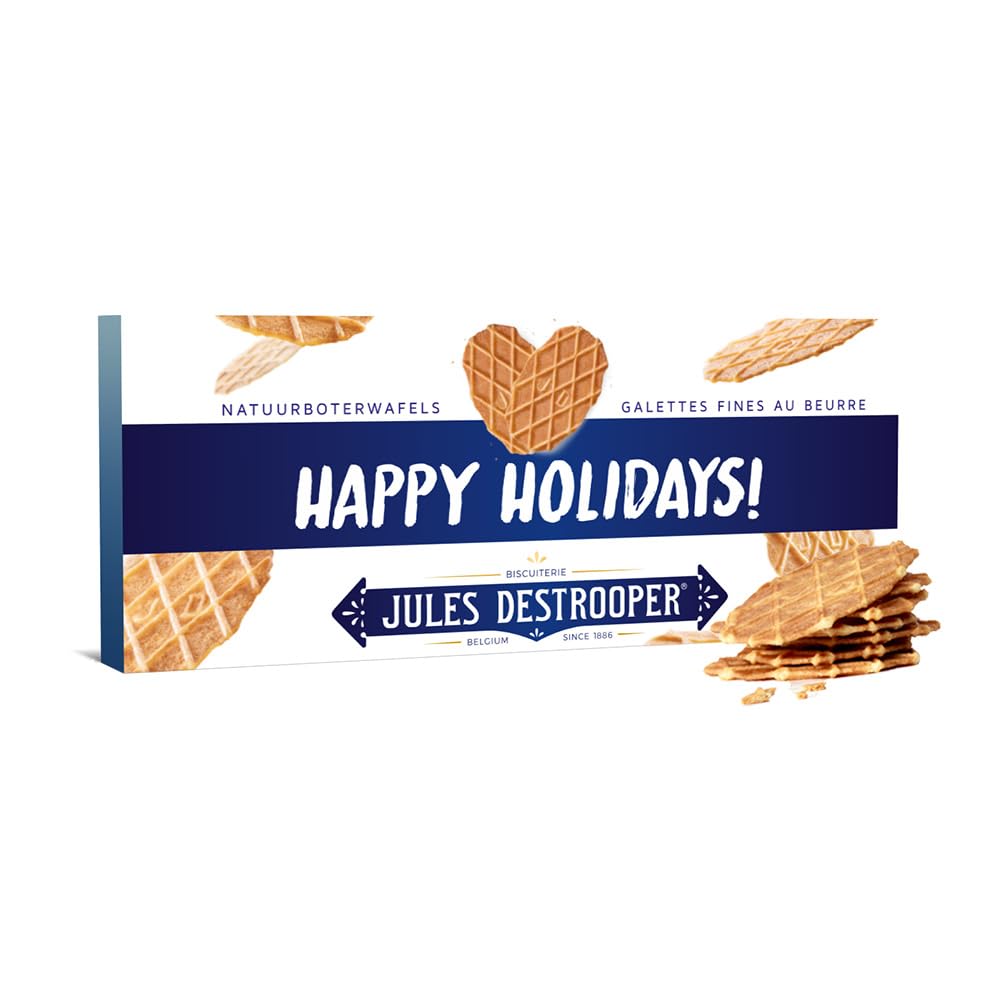 Jules Destrooper Natuurboterwafels in geschenkdoos met opschrift "Happy Holidays!" - Belgische boterkoekjes - 100g