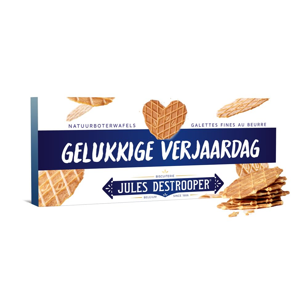 Jules Destrooper Natuurboterwafels in geschenkverpakking met opchrift "Gelukkige verjaardag" - Belgische boterkoekjes - 100g