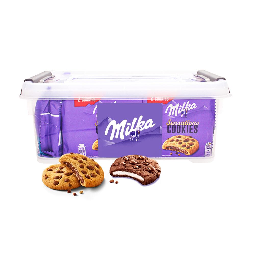 Discover a delicious experience with this reusable tin filled with 728g of Milka Sensations cookie mix. Inside, you'll find a delightful assortment of 7 Milka Sensations Oreo and 7 Milka Sensations Original. Originating from the majestic Alps, Milka is known for its authentic taste and unparalleled smoothness of milk chocolate. Treat yourself or someone special to the tender, authentic taste of Milka cookies with this generous tin of Sensations cookie mix. A treat that will melt the hearts of all chocolate and cookie lovers! INGREDIENTS Milka Sensations - 52g: Ingredients: Sugar, WHEAT flour, pastry BUTTER, sunflower oil, rapeseed oil, cocoa mass, whole MILK powder, cocoa butter, WHEAT starch, modified starch, lactose (from MILK), raising agents (ammonium carbonates, sodium carbonates, diphosphates), whey powder (from MILK), fat-reduced cocoa powder, emulsifier (SOYA lecithin), salt, flavorings (contains MILK), skimmed MILK powder, color (beta-carotene), SOYA fiber powder. MAY CONTAIN EGG AND NUTS. Milka Sensations Oreo - 52g: Ingredients: Sugar, WHEAT flour, pastry BUTTER, sunflower oil, rapeseed oil, cocoa mass, whole MILK powder, cocoa butter, WHEAT starch, modified starch, lactose (from MILK), raising agents (ammonium carbonates, sodium carbonates, diphosphates), whey powder (from MILK), fat-reduced cocoa powder, emulsifier (SOYA lecithin), salt, flavorings (contains MILK), skimmed MILK powder, color (beta-carotene), SOYA fiber powder. MAY CONTAIN EGG AND NUTS.Milka Sensations biscuits au chocolat Oreo - mélange de biscuits - biscuits au chocolat - en boîte réutilisable - 728gDESCRIPTION DU PRODUIT DESCRIPTION DU PRODUIT Découvrez une expérience gourmande avec cette boîte réutilisable remplie de 728g de Milka Sensations cookie mix. À l'intérieur, vous trouverez un délicieux assortiment de 7 x Milka Sensations Oreo et 7 x Milka Sensations Original. Originaire des majestueuses Alpes, Milka est connue pour son goût authentique et son chocolat au lait d'une tendresse inégalée. Offrez ou savourez la tendresse et le goût authentique des cookies Milka avec cette boîte généreuse de Sensations cookie mix. Un régal qui fera fondre tous les amateurs de chocolat et de biscuits! INGRÉDIENTS Milka Sensations - 52g: Ingrédients: Sucre, farine de BLÉ, BEURRE pâtissier, huile de tournesol, huile de colza, pâte de cacao, LAIT entier en poudre, beurre de cacao, amidon de BLÉ, amidon modifié, lactose (de LAIT), poudre à lever (carbonates d'ammonium, carbonates de sodium, disphosphates), lactosérum en poudre (de LAIT), cacao maigre en poudre, émulsifiant (lécithine de SOJA), sel, arômes (contient LAIT), LAIT écrémé en poudre, colorant (bêta-carotène), fibre de SOJA en poudre. PEUT CONTENIR ŒUF ET FRUITS À COQUE. Milka Sensations Oreo - 52g: Ingrédients : Sucre, farine de BLÉ, BEURRE pâtissier, huile de tournesol, huile de colza, pâte de cacao, LAIT entier en poudre, beurre de cacao, amidon de BLÉ, amidon modifié, lactose (de LAIT), poudre à lever (carbonates d'ammonium, carbonates de sodium, disphosphates), lactosérum en poudre (de LAIT), cacao maigre en poudre, émulsifiant (lécithine de SOJA), sel, arômes (contient LAIT), LAIT écrémé en poudre, colorant (bêta-carotène), fibre de SOJA en poudre. PEUT CONTENIR ŒUF ET FRUITS À COQUE.