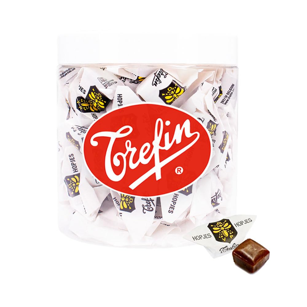 PRODUIT DESCRIPTION Step into a world of nostalgia with our reusable jar filled with 350g Trefin "Hopjes"! These delicious chocolates are made with a unique blend of coffee and caramel, giving them an unmistakable flavor that evokes memories and instantly leaves you feeling nostalgic. INGREDIENTS Sugar, glucose syrup, fully hydrogenated vegetable oil (coconut butter), condensed milk, buttermilk, cane molasses, coffee extract, flavor.