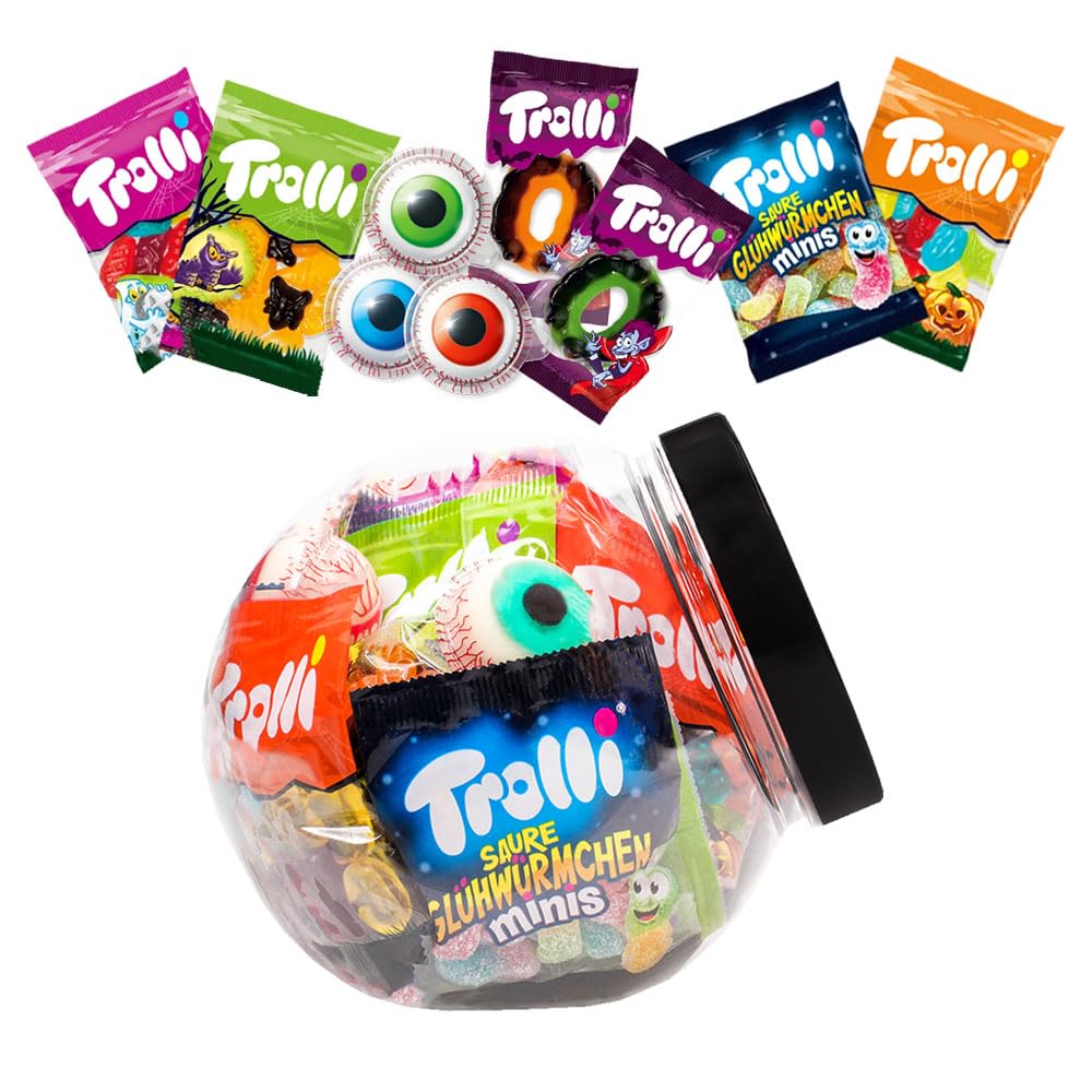 Get into the Halloween spirit with this reusable box filled with 360g of Trolli Halloween Mix! These spooky, individually wrapped sweets are perfect for handing out to little vampires, monsters, witches, and ghosts going trick-or-treating on Halloween. Thanks to their individual wrapping, the sweets stay fresh longer and can be easily shared at your own spooky Halloween party. Add a sweet touch to Halloween with this Trolli candy mix—a spooky surprise that will bring a smile to everyone's face! INGREDIENTS Ingredients: Glucose syrup, sugar, gelatin, acids: citric acid, lactic acid, malic acid, dextrose, modified potato starch, humectant: sorbitol, flavourings, acidity regulator: calcium citrates, colour: titanium dioxide, carmine, curcumin, brilliant blue FCF, medicinal vegetable carbon, food colour (safflower), glazing agents: beeswax, white and yellow, carnauba wax, vegetable fat (palm), gelling agent: pectin, agar-agar.Trolli Halloween bonbons - sachets à distribuer - bonbons acidulés - bonbons sucrés - bonbons pour Halloween - saupoudrage - fête d'Halloween - 360gDESCRIPTION DU PRODUIT DESCRIPTION DU PRODUIT Plongez dans l'esprit d'Halloween avec cette boîte réutilisable remplie de 360g de bonbons Trolli Halloween Mix! Ces bonbons effrayants, individuellement emballés, sont parfaits pour distribuer aux petits vampires, monstres, sorcières et fantômes qui viendront faire du porte-à-porte lors de la fête de Halloween. Grâce à leur emballage individuel, les bonbons restent frais plus longtemps et peuvent être facilement partagés lors de votre propre fête d'Halloween effrayante. Apportez une touche sucrée à Halloween avec ce mélange de bonbons Trolli, une surprise effrayante qui fera sourire petits et grands! INGRÉDIENTS Ingrédients: Sirop de glucose sucre gélatine acidifiants: acide citrique, acide lactique, acide malique dextrose amidon modifié de pomme de terre agent humidifiant sorbitol arômes correcteur d'acidité: citrates de calcium colorant: dioxyde de titane, carmin, curcumine, bleu brillant FCF, charbon végétal médicinal aliment colorant (carthame) agents d'enrobage: cire d'abeille, blanc et jaune, cire de carnauba graisse végétale (palme) gélifiant: pectine, agar-agar.