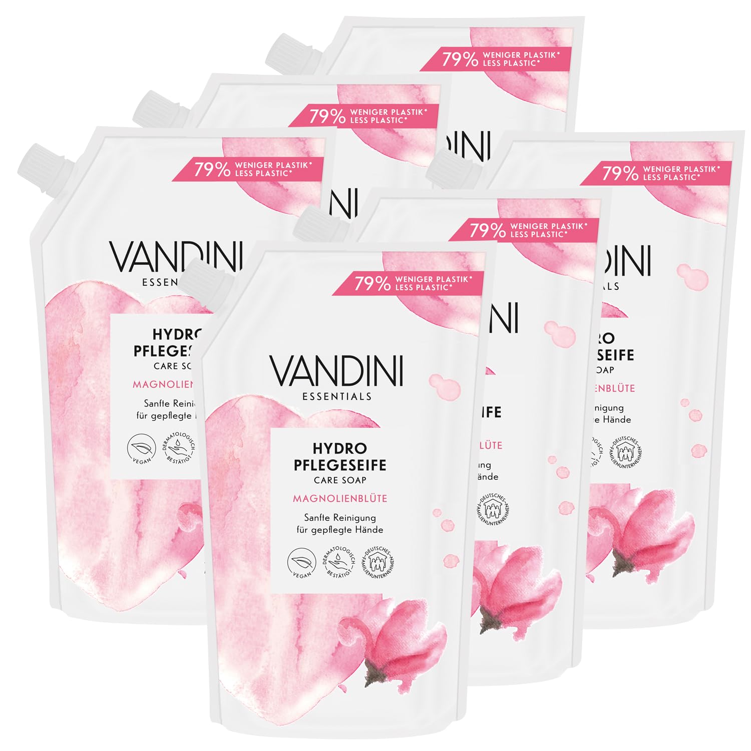 VANDINI VANDINI Pack of 6 Hydro Soap Refills with Magnolia Blossom Scent - 500 ml - Made in Germany - Vegan Liquid Soap Refill - Hand Soap Refill for Gentle Cleansing