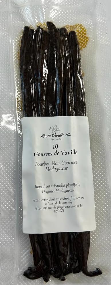 Our Bourbon vanilla beans from Madagascar come from a selection of carefully sorted and dried vanillas. Premium quality and 100 natural. These highly aromatic, rich, and full-bodied vanillas offer an intense flavor perfect for flavoring your sweet preparations such as creams, flans, cakes, and pastries.