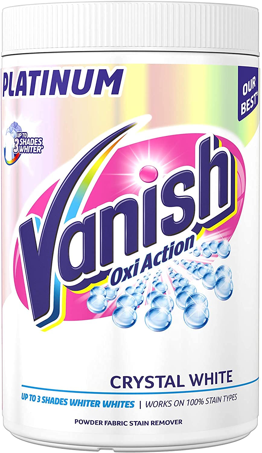 Vanish Oxi Action Platinum is our best formula, for powerful stain remover, and dazzling whites. It works 1st time on 100% of stain types. There are 3 main stain types that cover all stains: coloured, greasy and enzymatic. Vanish Oxi Action Platinum Crystal Whites stain remover powder works on them all. Our best whitening power, goes deep into the fibres to give you dazzling whites, 3 shades whiter! You choose how to use this versatile stain remover powder - in wash, pre-treat or soak your fabrics. Keeping your clothes stain free & instantly whiter is easier than you think - just add a scoop in every wash. See it for yourself. Impossible made Possible. Do not use on wool, silk or leather. Do not use on finished or coated surfaces - for example wood and metal. Warning: Always follow the usage instructions. Harmful if swallowed and irritating to skin. Keep out of reach of children and keep away from eyes. INGREDIENTS Contains >30% Oxygen-Based Bleaching Agent, <5% Anionic Surfactants, Non-Ionic Surfactants, Zeolites, Enzymes, Perfume SAFETY WARNING Vanish oxi action platinum for whites powder fabric stain remover contains: sodium carbonate peroxide causes serious eye damage causes skin irritation keep out of reach of children do not get in eyes, on skin, or on clothing wash hands thoroughly after handling wear eye protection if in eyes: rinse cautiously with water for several minutes. Remove contact lenses, if present and easy to do. Continue rinsing. Immediately call doctor. If swallowed: call a doctor if you feel unwell. For sensitive skin, the use of gloves is recommended. Danger BOX CONTAINS 1 x Vanish Platinum White Powder 1410g MANUFACTURER CONTACT INFORMATION Wellcroft House Wellcroft Road Slough Sl1 4Aq See more